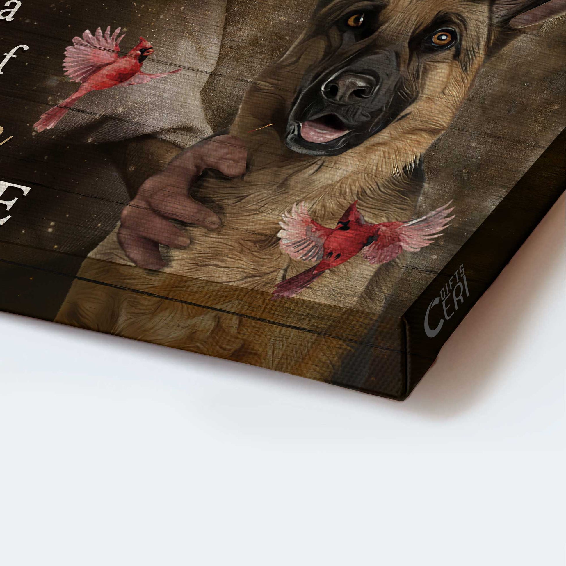 Memorial Landscape Canvas- German Shepherd dog, Northern cardinal- Gift for members family- There's a little bit of heaven in our home - Heaven Landscape Canvas Prints, Wall Art.