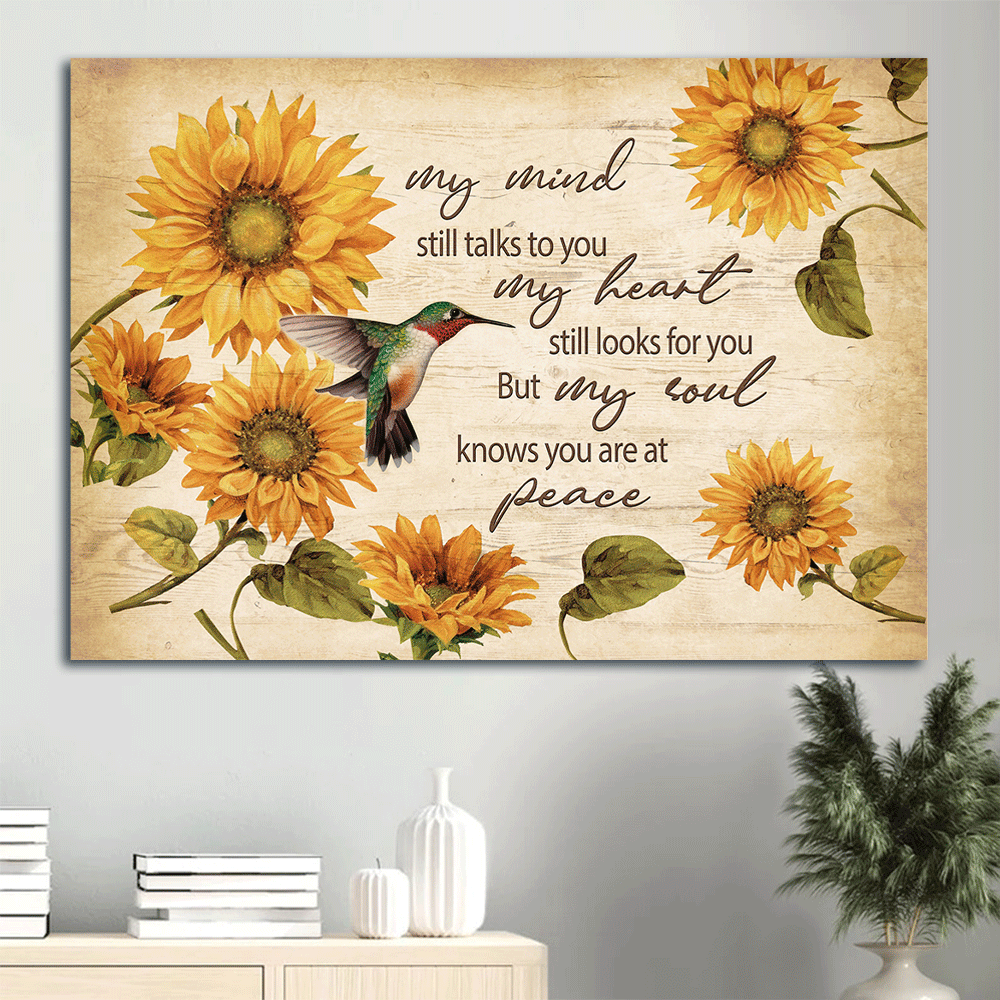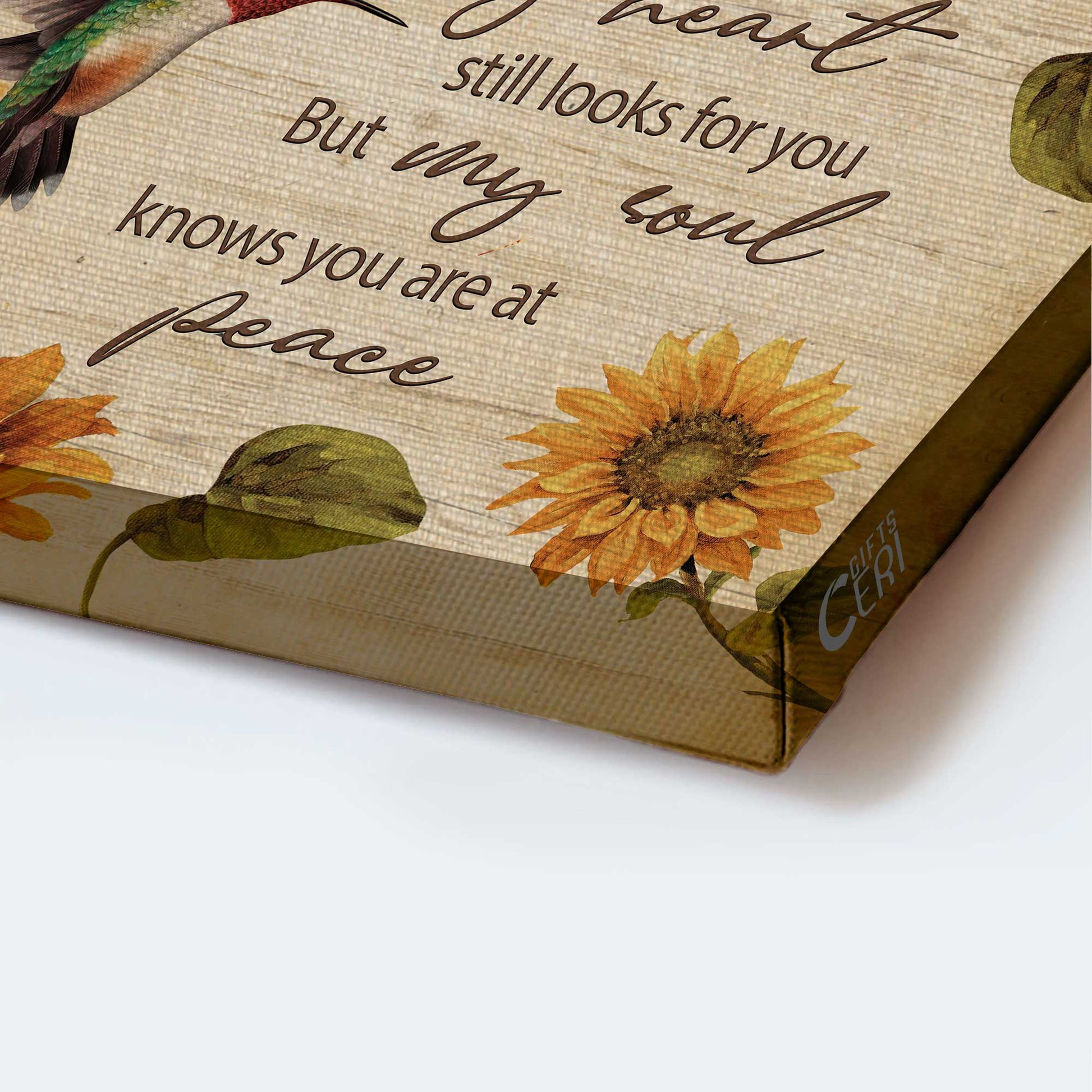 Memorial Landscape Canvas - Heaven, Sunflower Pattern, Colorful Hummingbird Canvas - Memorial Gift For Family Members - My Soul Knows You Are At Peace