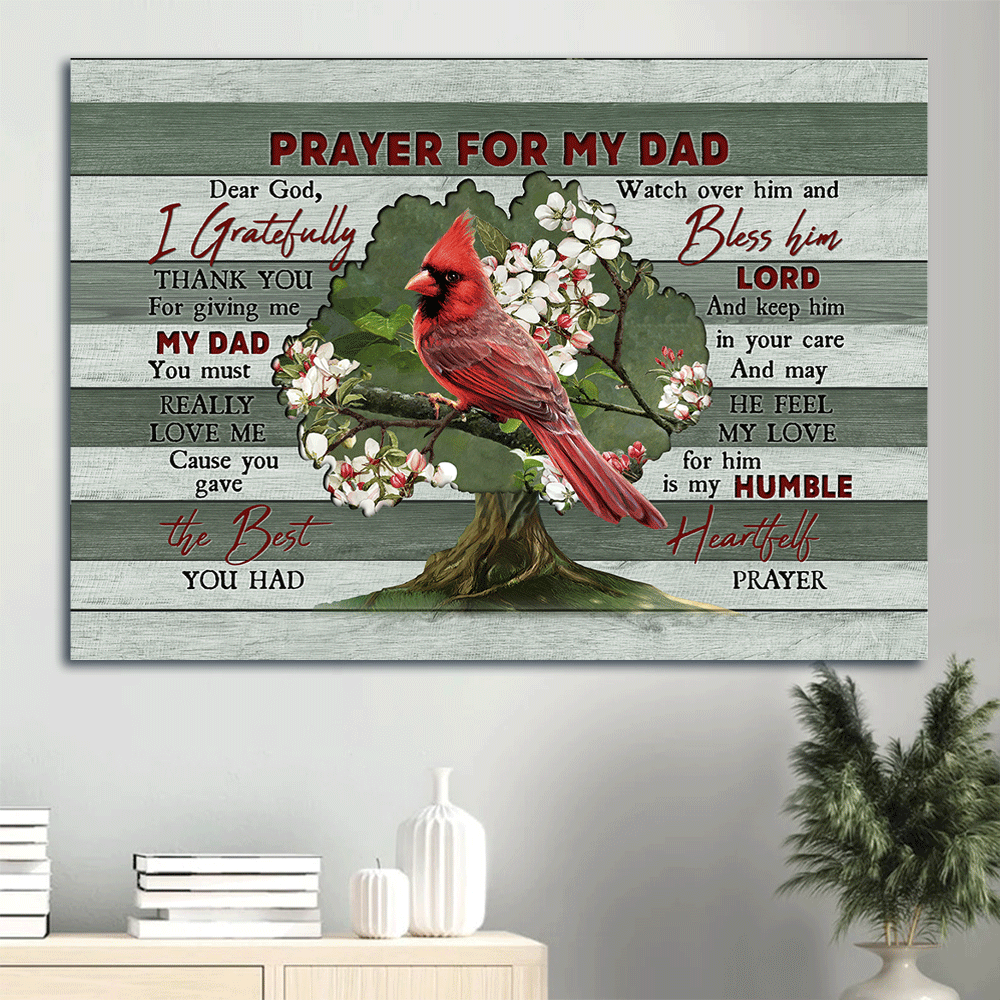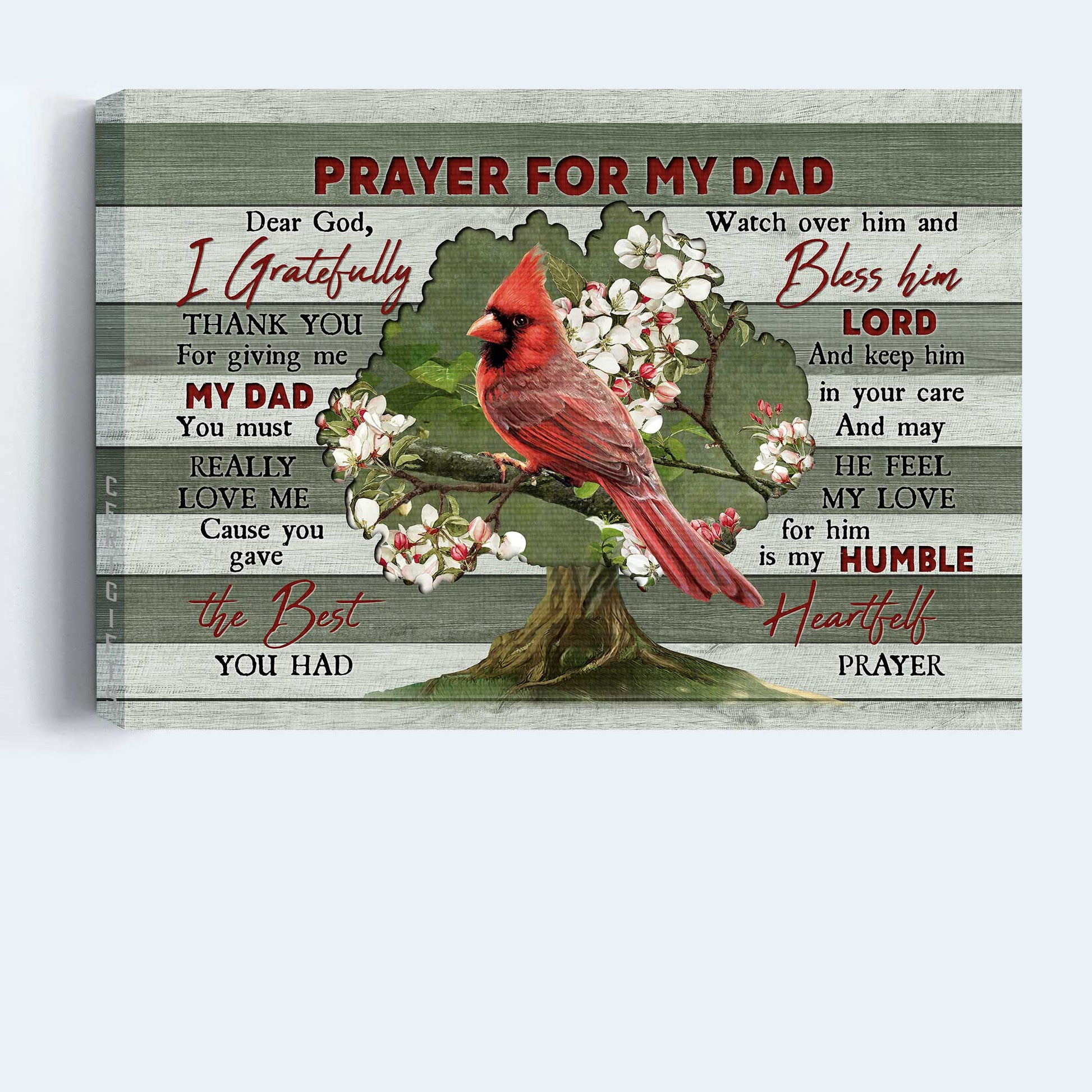Memorial Landscape Canvas- Red cardinal, Bleeding heart vine- Memorial gift for members family- Prayer for my Dad- Heaven Landscape Canvas Prints, Wall Art.