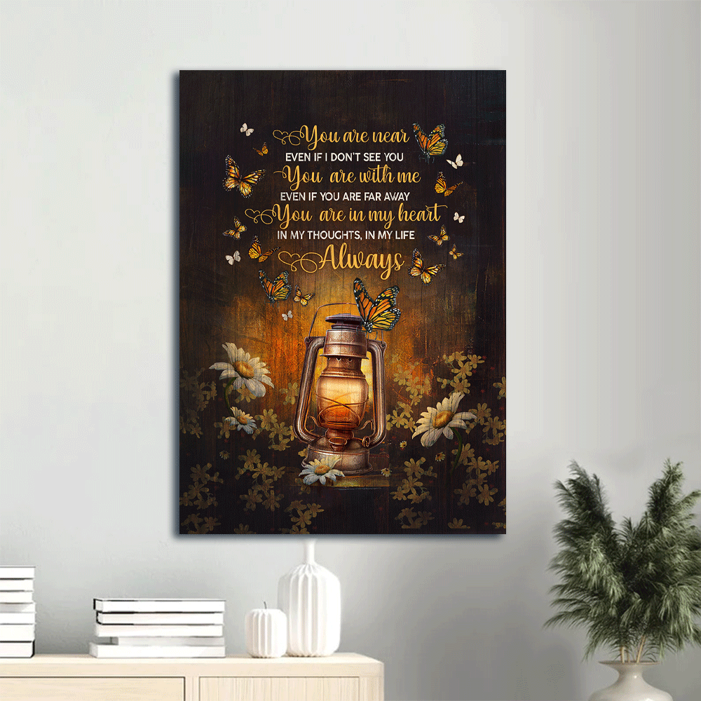 Memorial Portrait Canvas - Antique lantern, Beautiful night, Orange butterfly Portrait Canvas - Memorial Gift For Family Members - You are in my heart