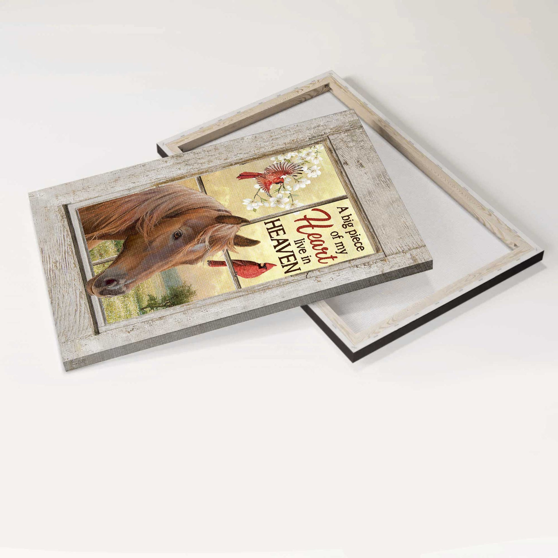 Memorial Portrait Canvas- Beautiful horse, Red cardinal, Jasmine, Heaven Portrait Canvas- Gift for members family- A big piece of my heart live in heaven.