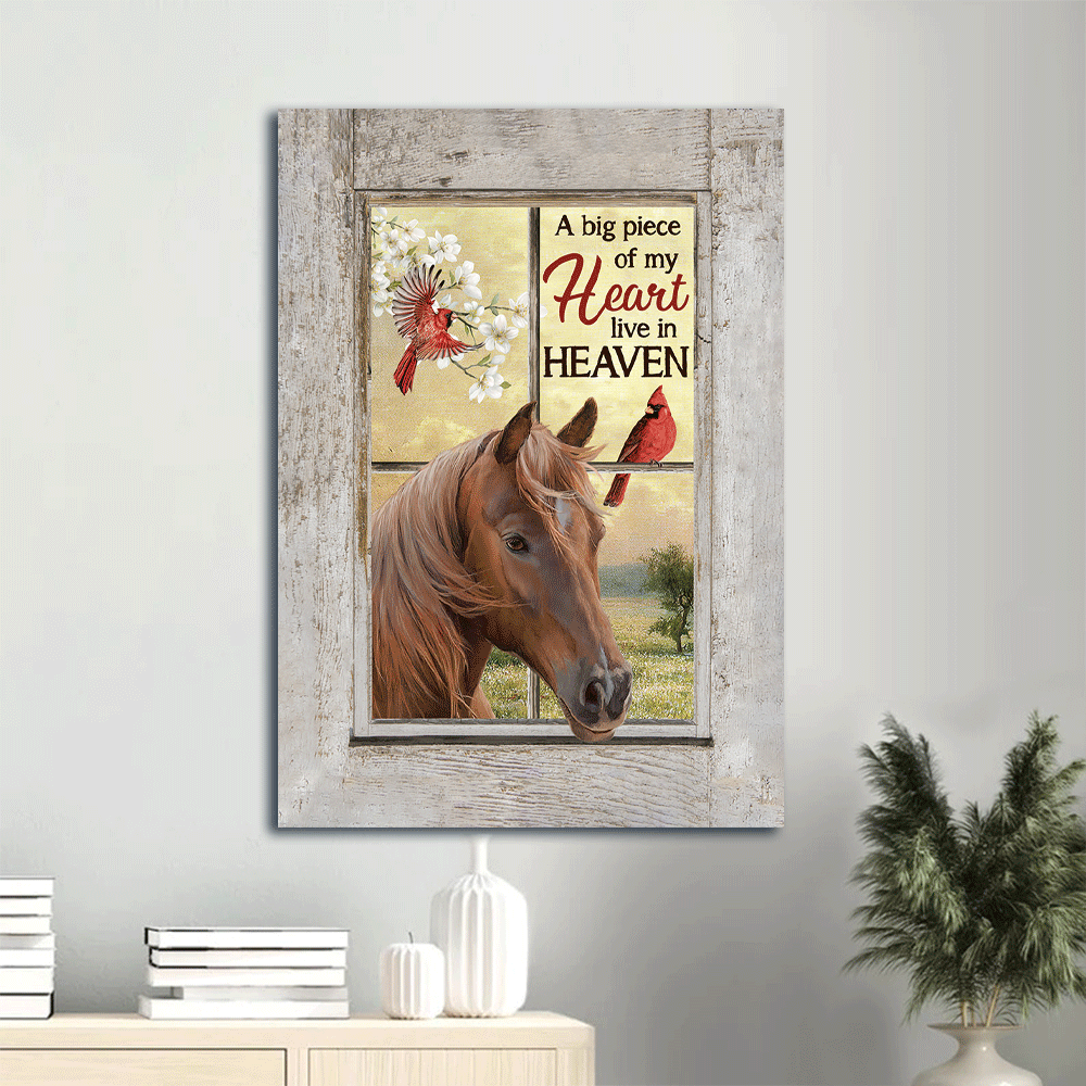 Memorial Portrait Canvas- Beautiful horse, Red cardinal, Jasmine, Heaven Portrait Canvas- Gift for members family- A big piece of my heart live in heaven