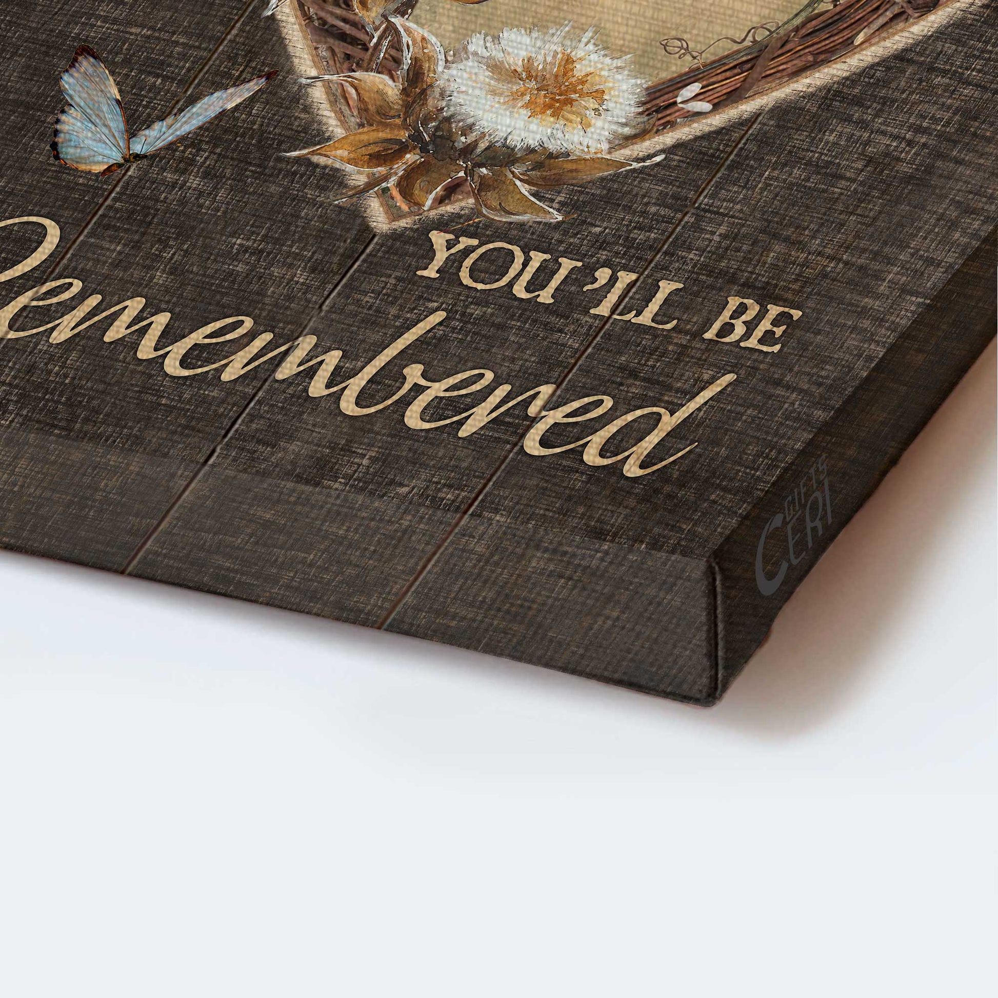 Memorial Portrait Canvas- Blue butterfly, Heart wreath, Pretty wildflower canvas- Gift for members family- As long as I breathe, you'll be remembered - Heaven Portrait Canvas Prints, Wall Art.