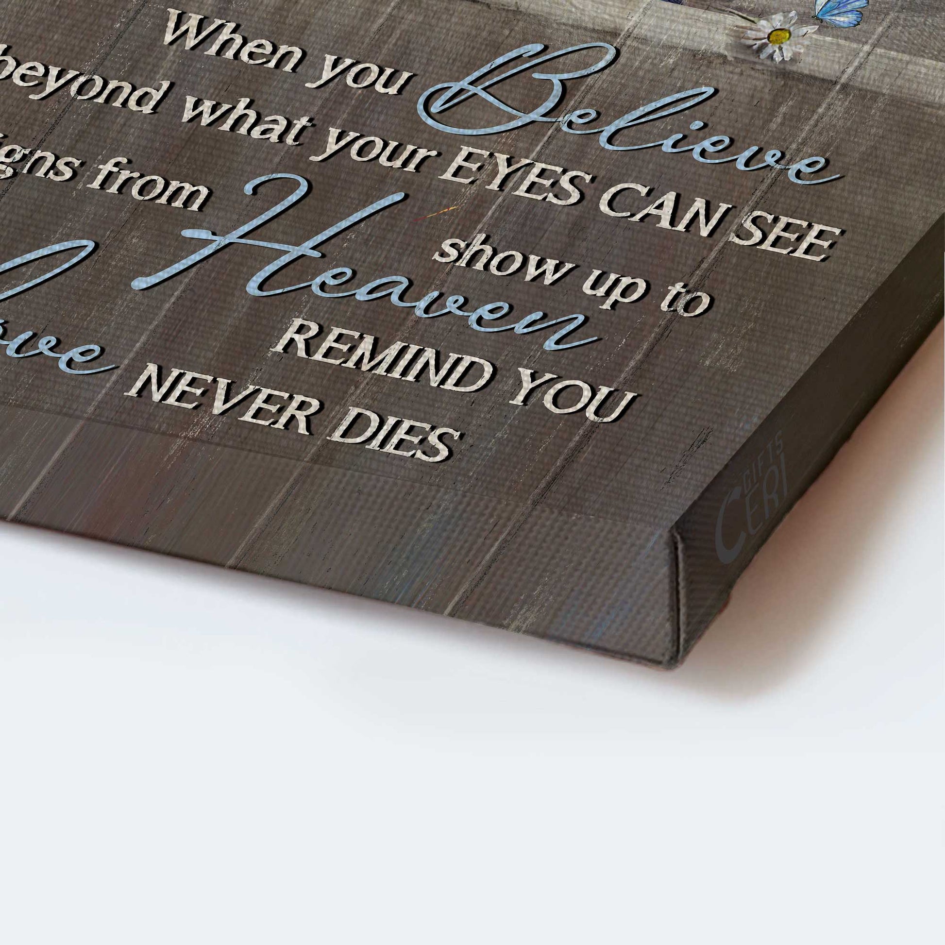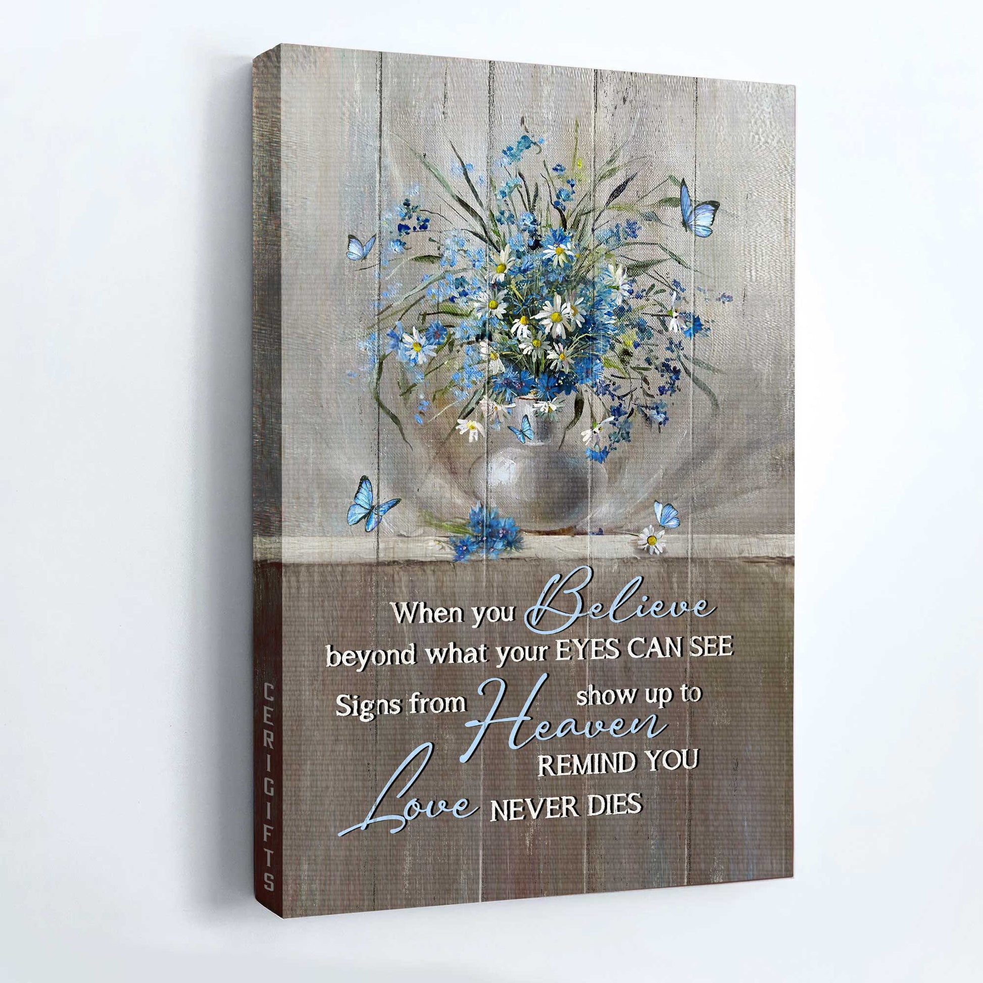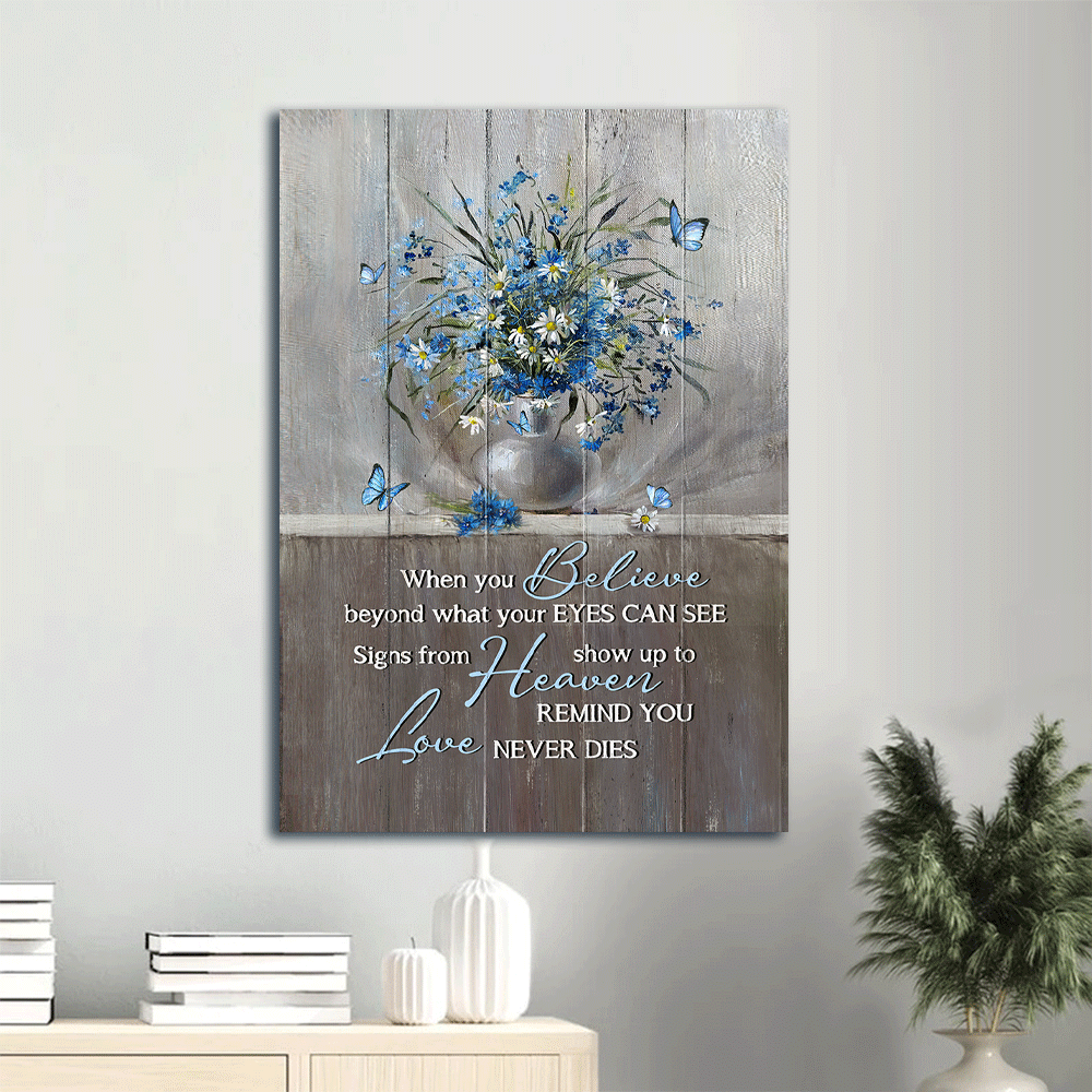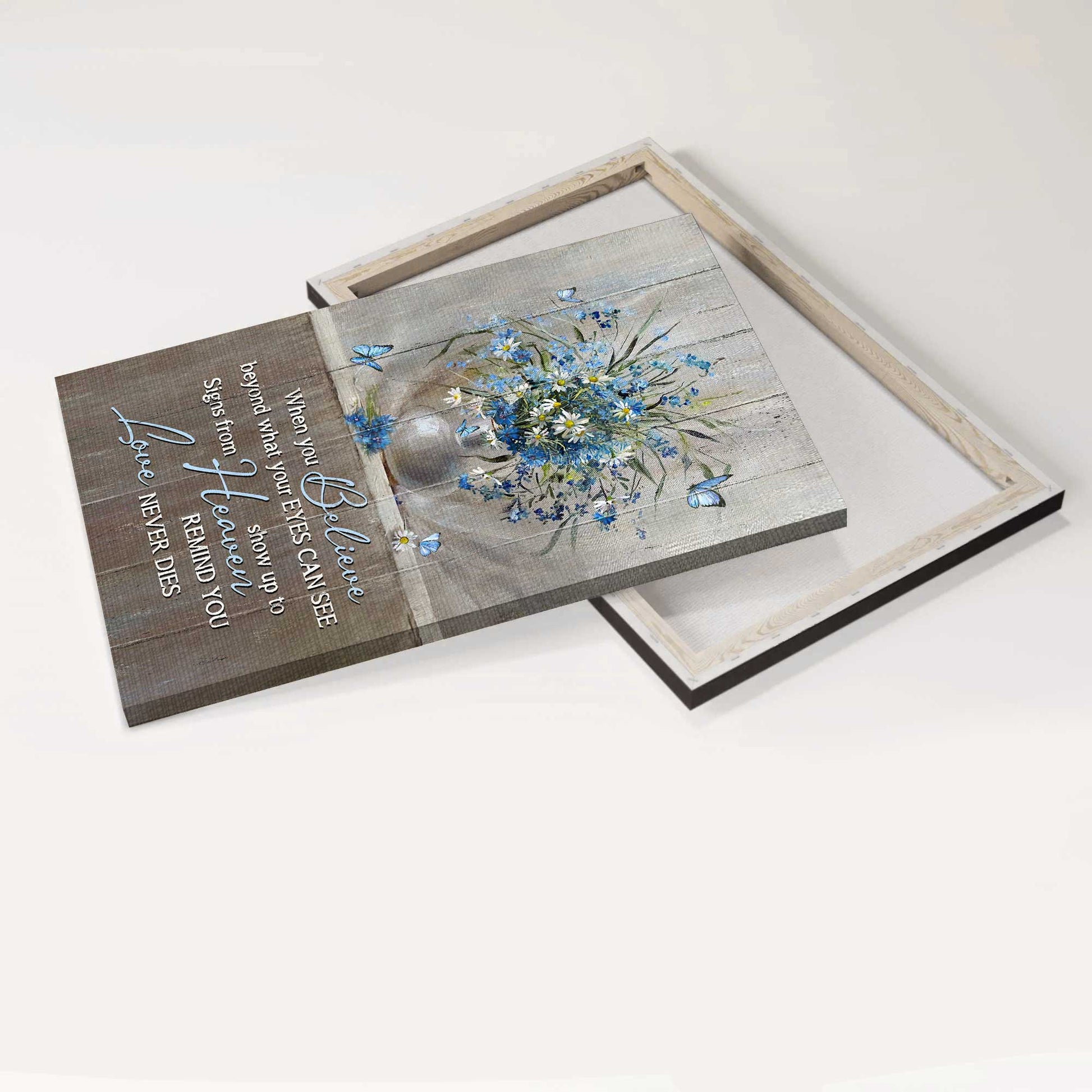Memorial Portrait Canvas- Blue daisy painting, Still life drawing canvas- Gift for members family- Signs from heaven remind you love never dies - Heaven Portrait Canvas Prints, Wall Art