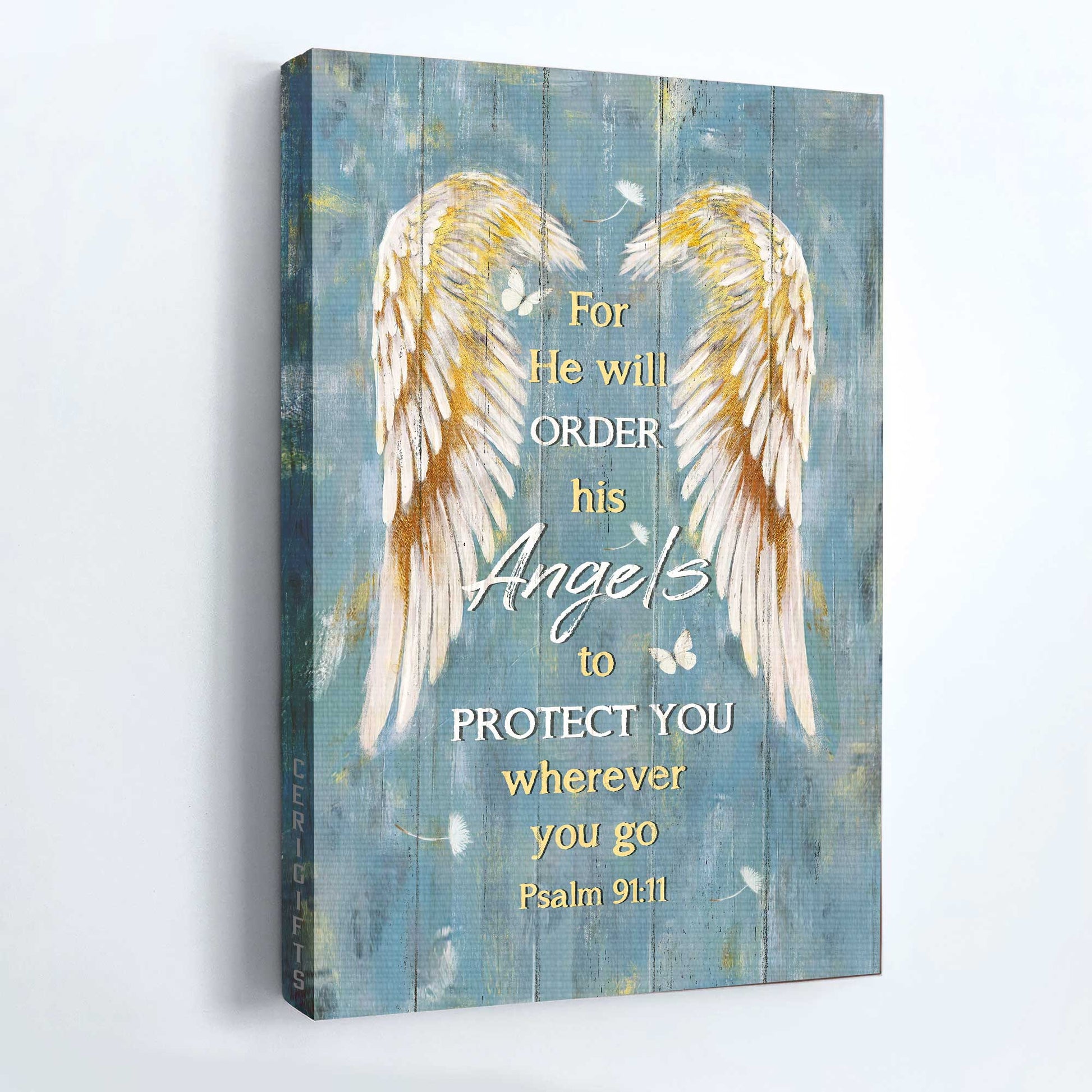 Memorial Portrait Canvas- Pretty angel wings, Blue sky- Gift for Family- For he will order his angels to protect you - Heaven Portrait Canvas Prints, Wall Art