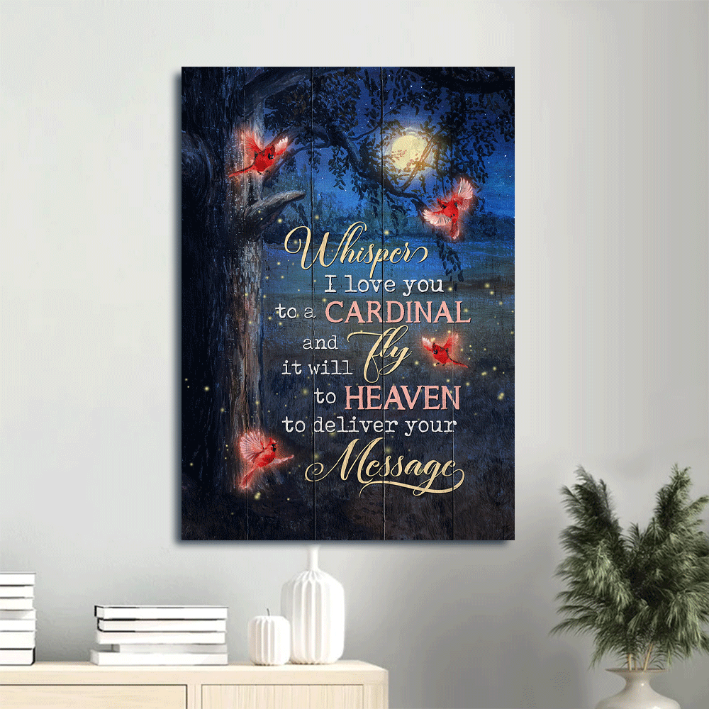 Memorial Portrait Canvas- Red cardinal, Beautiful moon, Amazing night painting- Memorial gift for family- Whisper I love you to a cardinal - Heaven Portrait Canvas Prints, Wall Art