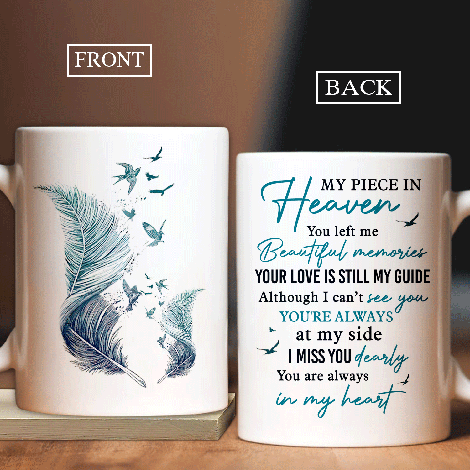 Memorial White Mug - Blue feathers, Flying swallows - Gift For Member Family - You are always in my heart - Heaven White Mug