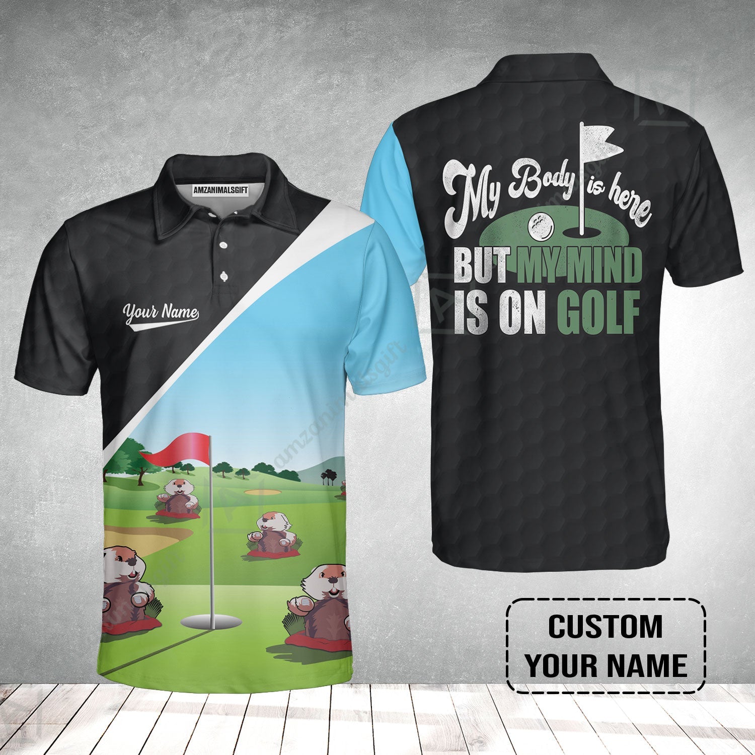 Men Golf Polo Shirt - Gopher My Mind Is On Golf Custom Men Polo Shirt