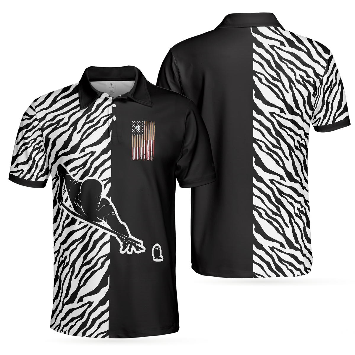 Men Polo Shirt - Billiards Zebra Polo Shirt, Cool Billiards Polo Shirt With Zebra Pattern, Best Pool Shirt For Pool Players