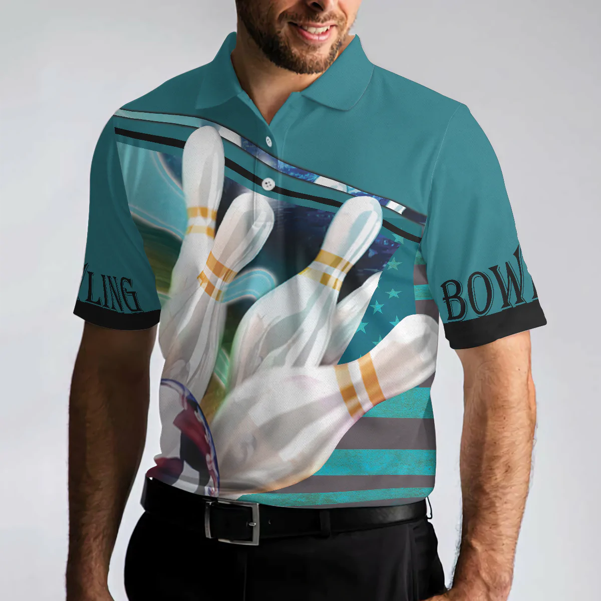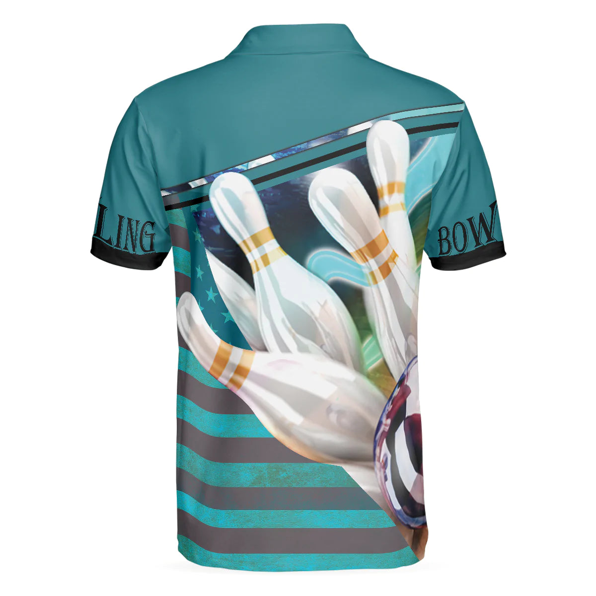 Men Polo Shirt - Love Bowling Polo Shirt - Gift For bowling player - Blue American Flag Bowling Shirt For Men