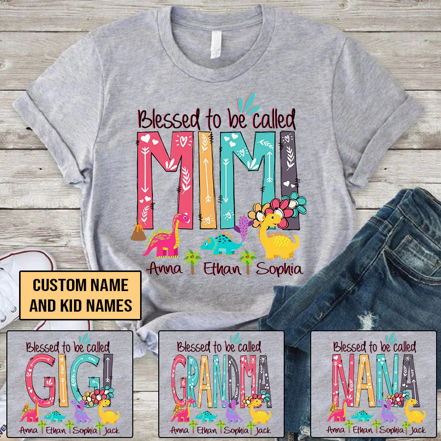 Mimi and Kids Custom Name T-shirt, Blessed To Be Called Mimi Dinosaur Personalized Shirt - Perfect Gift For Gigi, Nana, Mimi, Grandma