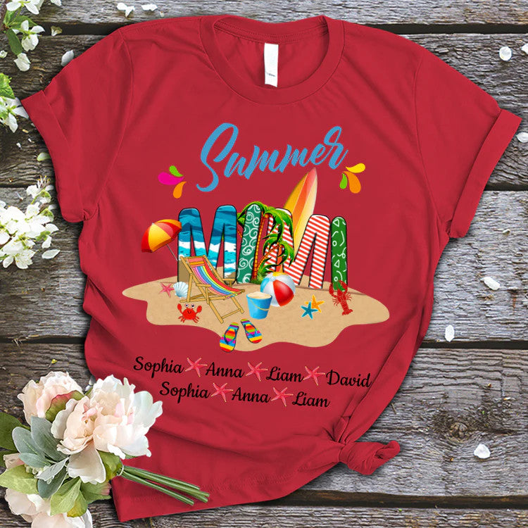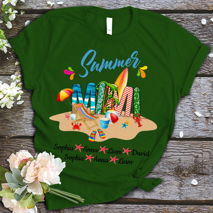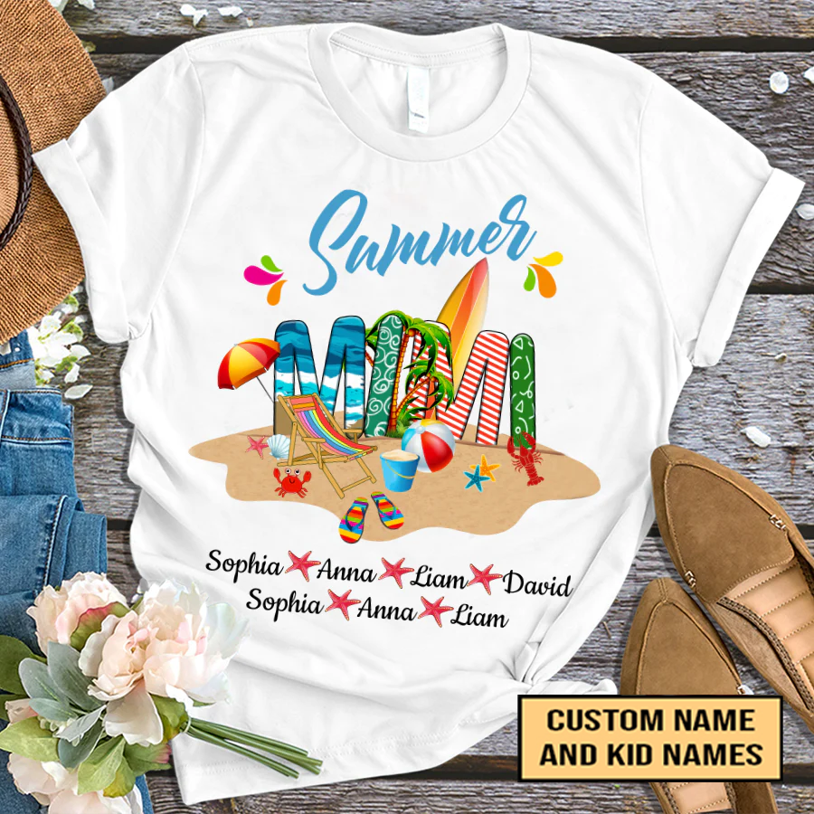 Mimi And Kids Custom Name T-Shirt, Mother's Day Personalized T-Shirt, Beach Summer Custom T-Shirt - Gift For Mimi, Nana, Grammy, Grandma