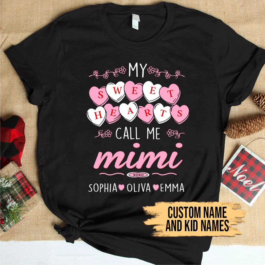 Mimi and Kids Custom Name T-shirt, My Sweet Hearts call me Mimi Valentine Personalized Shirt - Perfect Gift For Gigi, Nana, Mimi, Grandma
