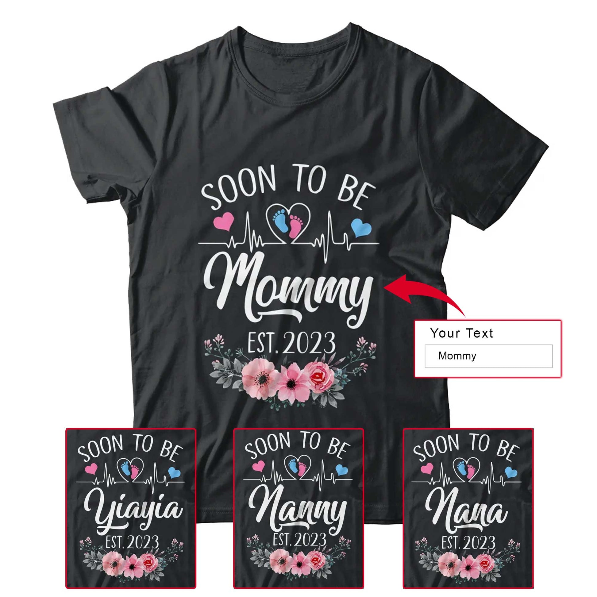 Mommy Floral Heart Beat Mother's Day T-shirt - Soon To Be Mommy Pregnancy Personalized Shirt - Custom Name And Year Shirt For Gigi, Nana, Mimi
