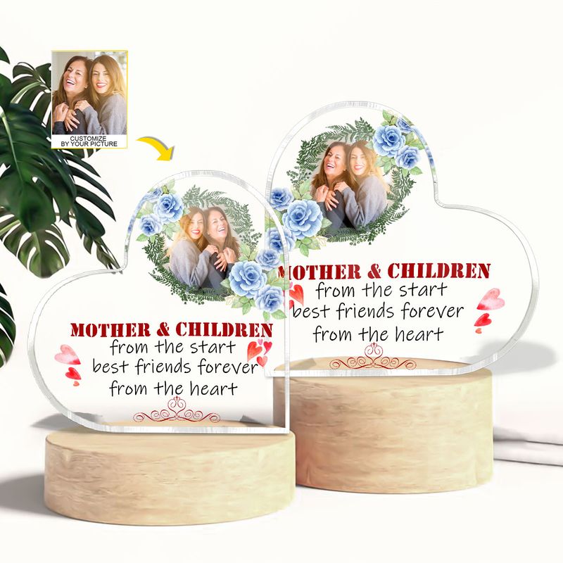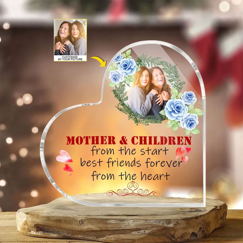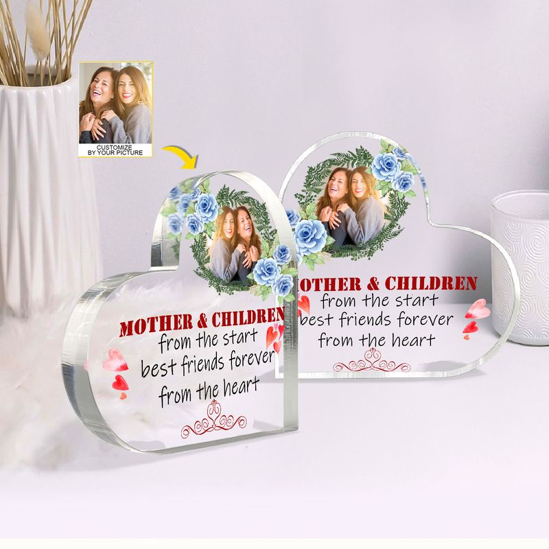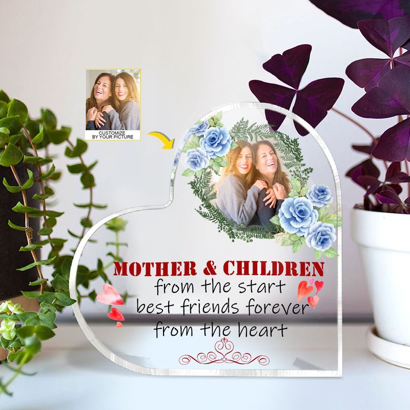 Mother Children Custom Photo Mother's Day, Floral Heart Personalized Heart Shaped Acrylic Plaque Home Decor - Custom Name Gifts For Mom, Nana, Mama