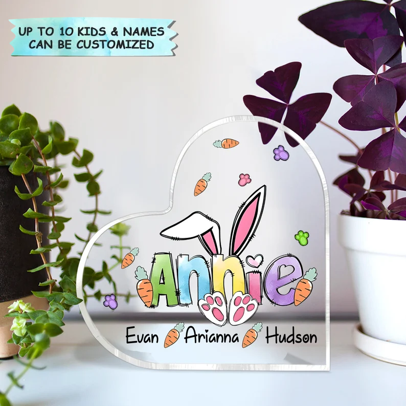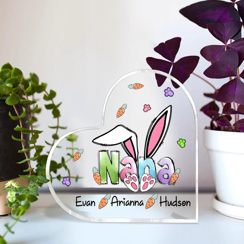 Mother's Day Bunny Nana Peeps Heart Shaped Acrylic Plaque, Custom Names Heart Shaped Acrylic, Personalized Gift For Grandma, Mimi, Nana, Grandmy