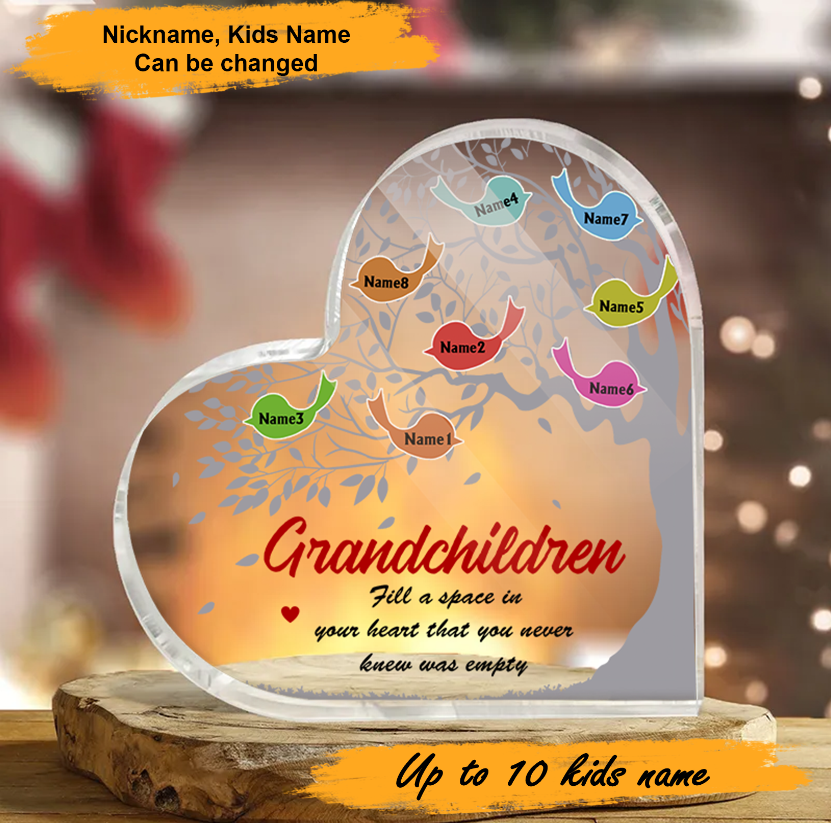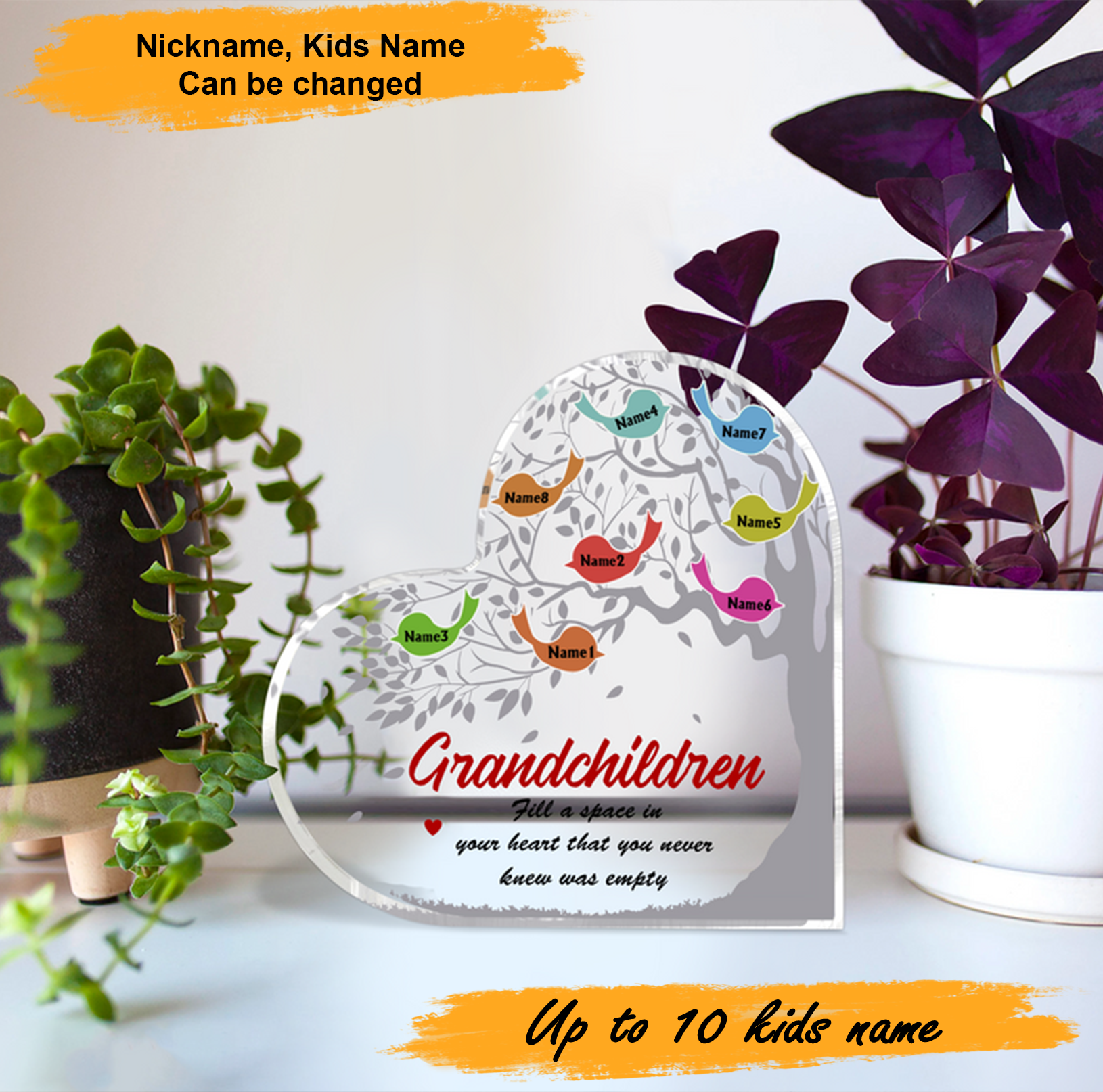 Mother's Day Grandchildren Fill Heart Personalized Heart Shaped Acrylic Plaque - Custom Name Gifts For Nana, Mother, Grandma, Mom, Mama, Gigi