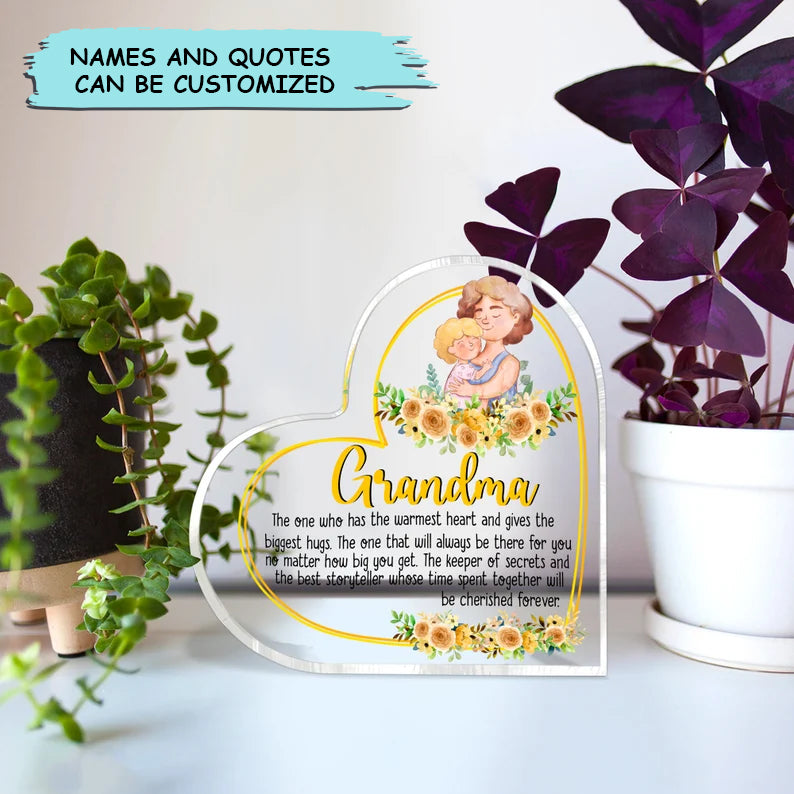 Mother's Day Grandma Heart Shaped Acrylic Plaque, Custom Names And Quotes Heart Shaped Acrylic, Personalized Gift For Grandma, Mimi, Nana, Grandmy