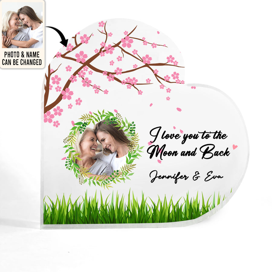 Mother's Day Mom And Daughter Love Moon And Back Custom Photo - Heart Shaped Acrylic Plaque - Personalized Photo Gifts For Mother, Mom, Mama