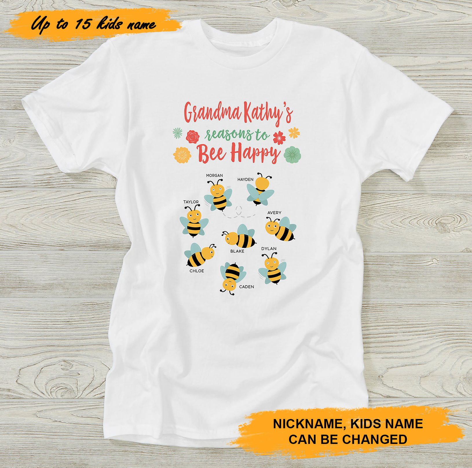 Mother's T-shirt, Grandma Bee Happy Custom Name Shirt, Mother's Day Shirt - Personalized Gift For Mom, Gigi, Nana, Mimi, Grandma