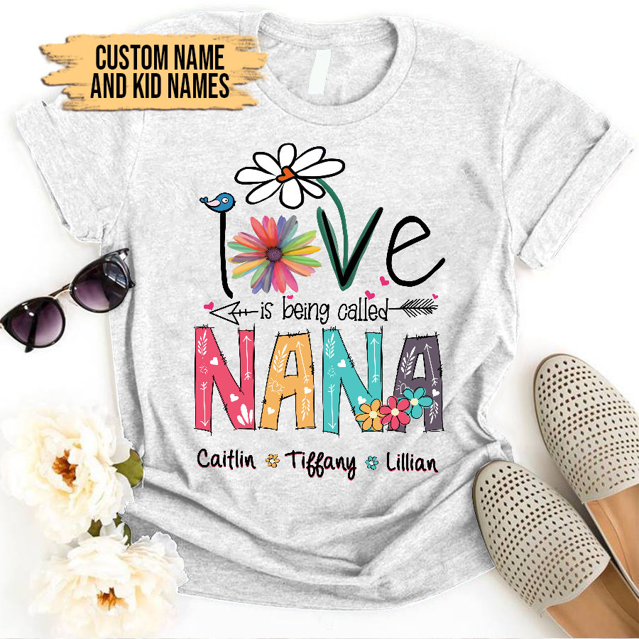 Nana and Kids Custom Name T-shirt, Love Is Being Called Nana Personalized Shirt - Perfect Gift For Gigi, Nana, Mimi, Grandma