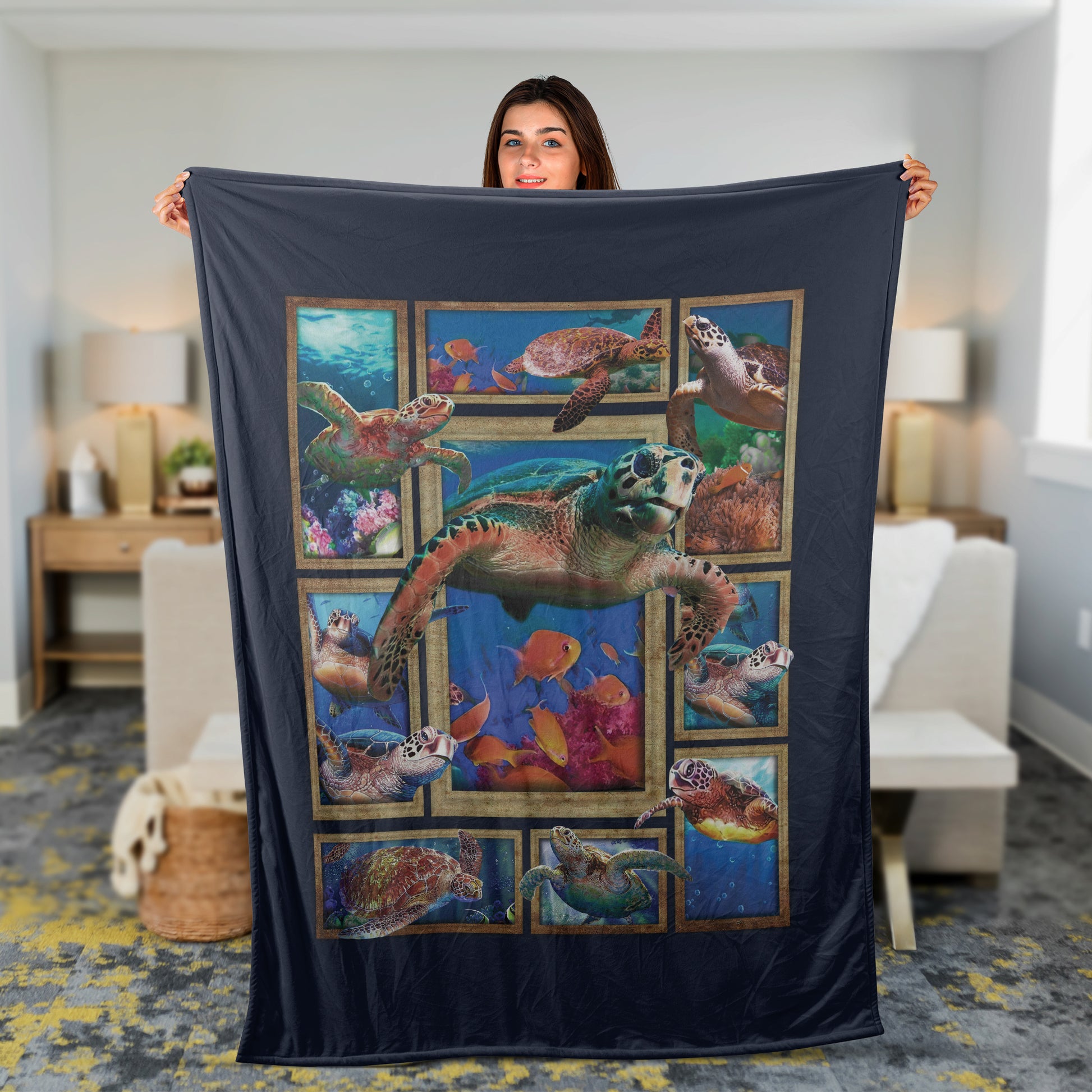 Ocean Throw Blanket, Sea Turtle Blanket, Inspirational Gift - Watercolor Sea Turtle, Amazing Ocean Drawing, Fish Painting