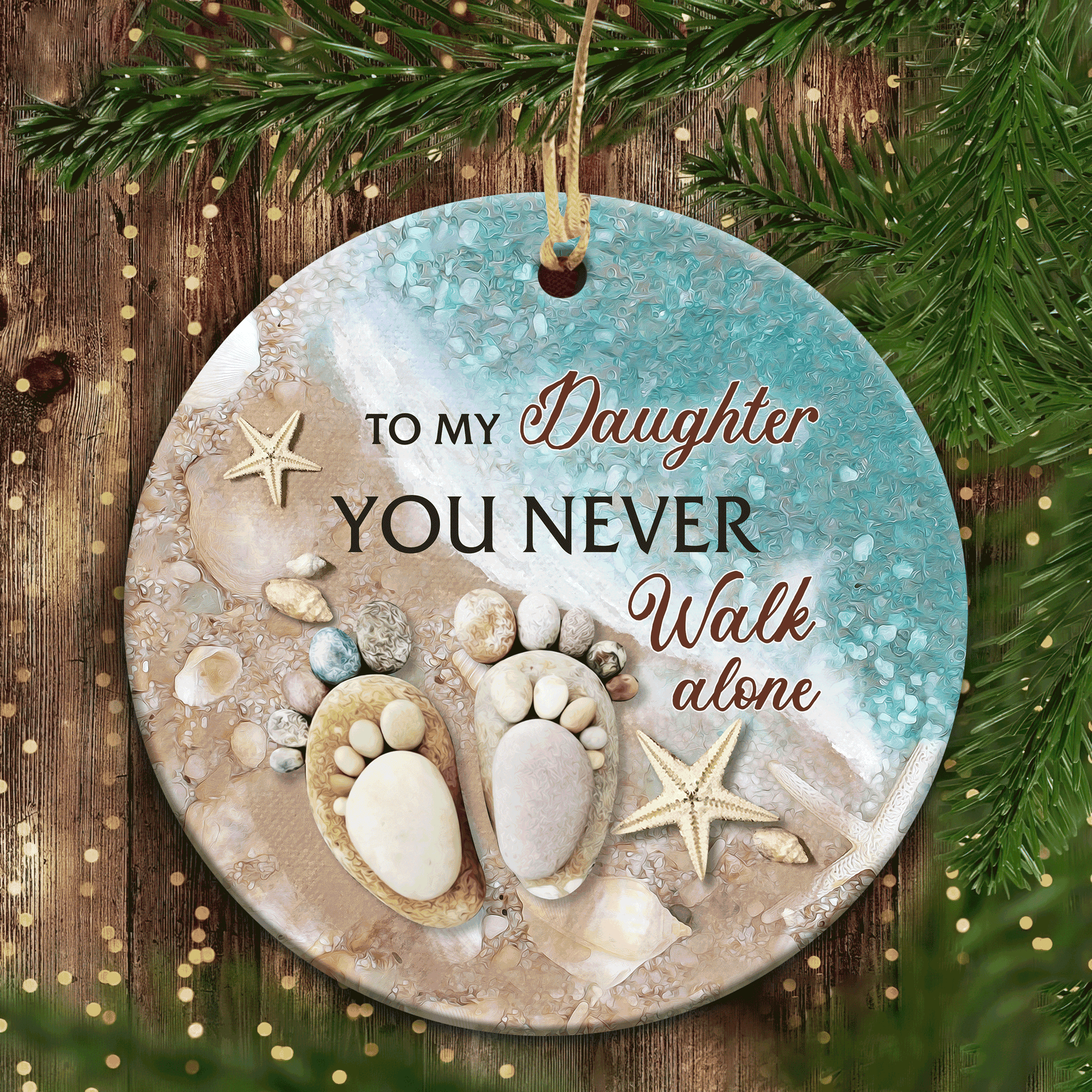 Perfect Christmas Gifts For Daughter, Daughter Feets on Beach Christmas Ceramic Ornament, Family Ornaments, You Never Walk Alone