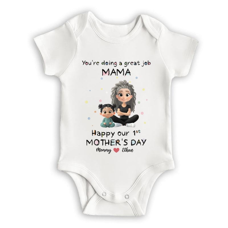 Personalized 1st Mother's Day Mommy Doing A Great Job Baby Onesie Gift For Mom, Grandma And Baby Newborn - HN27