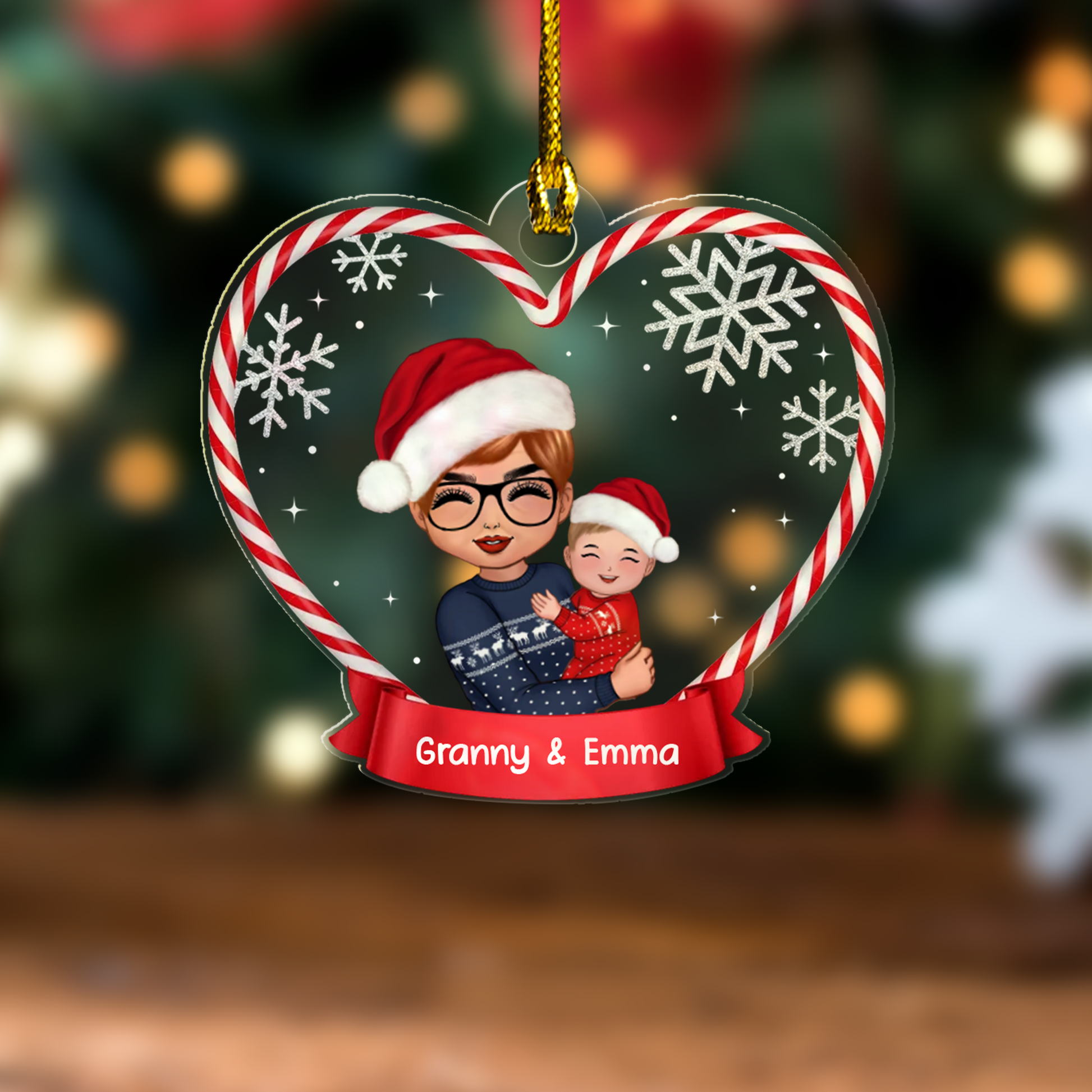 Personalized Acrylic Ornament Grandma Mom Hugging Kid, Perfect Christmas Gift For Granddaughter, Grandson, Family