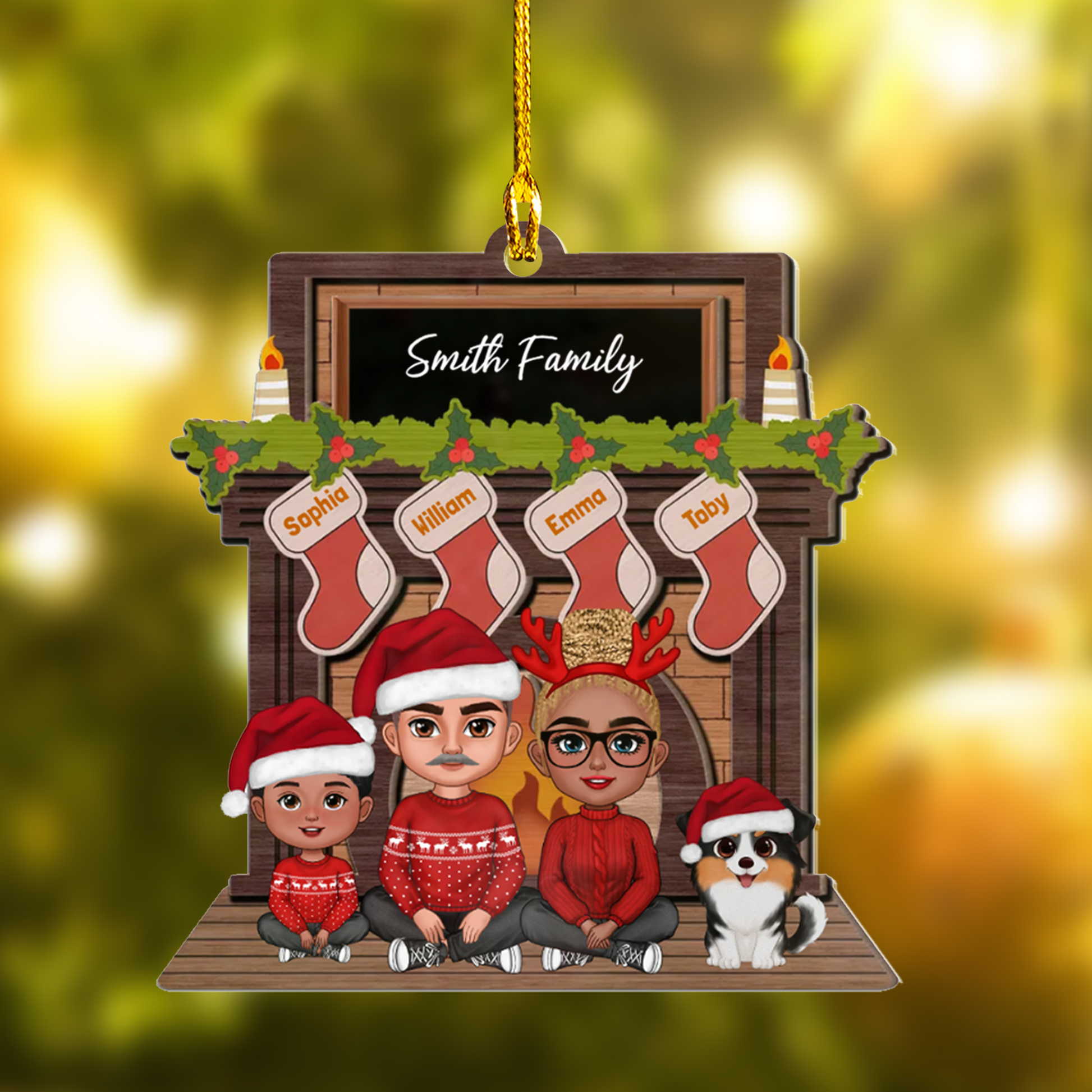 Personalized Acrylic Ornament Whole Family Sitting At Christmas Fireplace, Perfect Christmas Decor Gift For Family