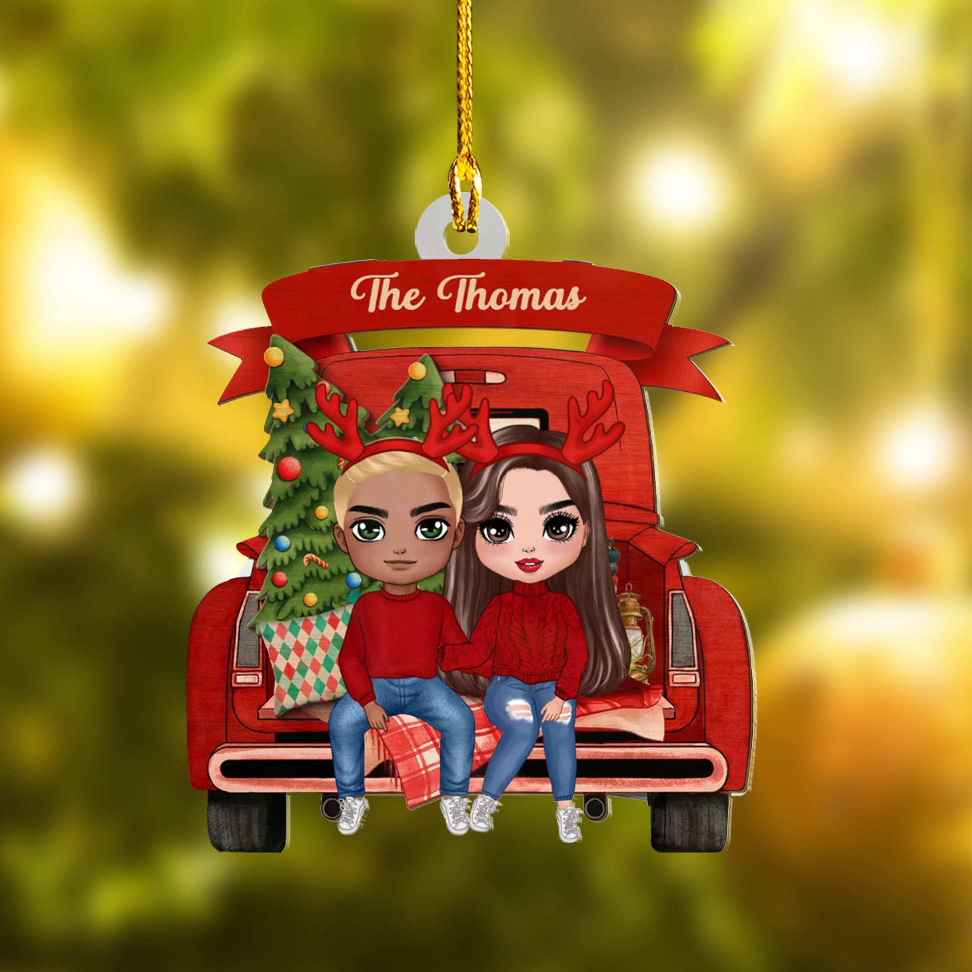 Personalized Acrylic Ornament Whole Family Sitting On Christmas Truck, Perfect Christmas Decor Gift For Family