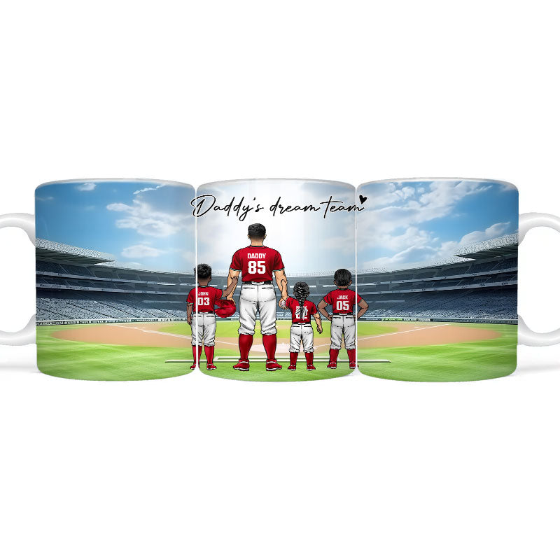 Personalized Baseball Family Dad Mug, Daddy Dream Team Baseball Mug