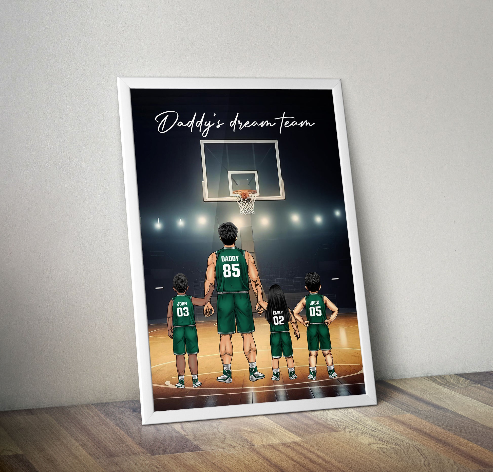 Personalized Basketball Family Dad Poster Wall Art, Daddy Dream Team Basketball Poster