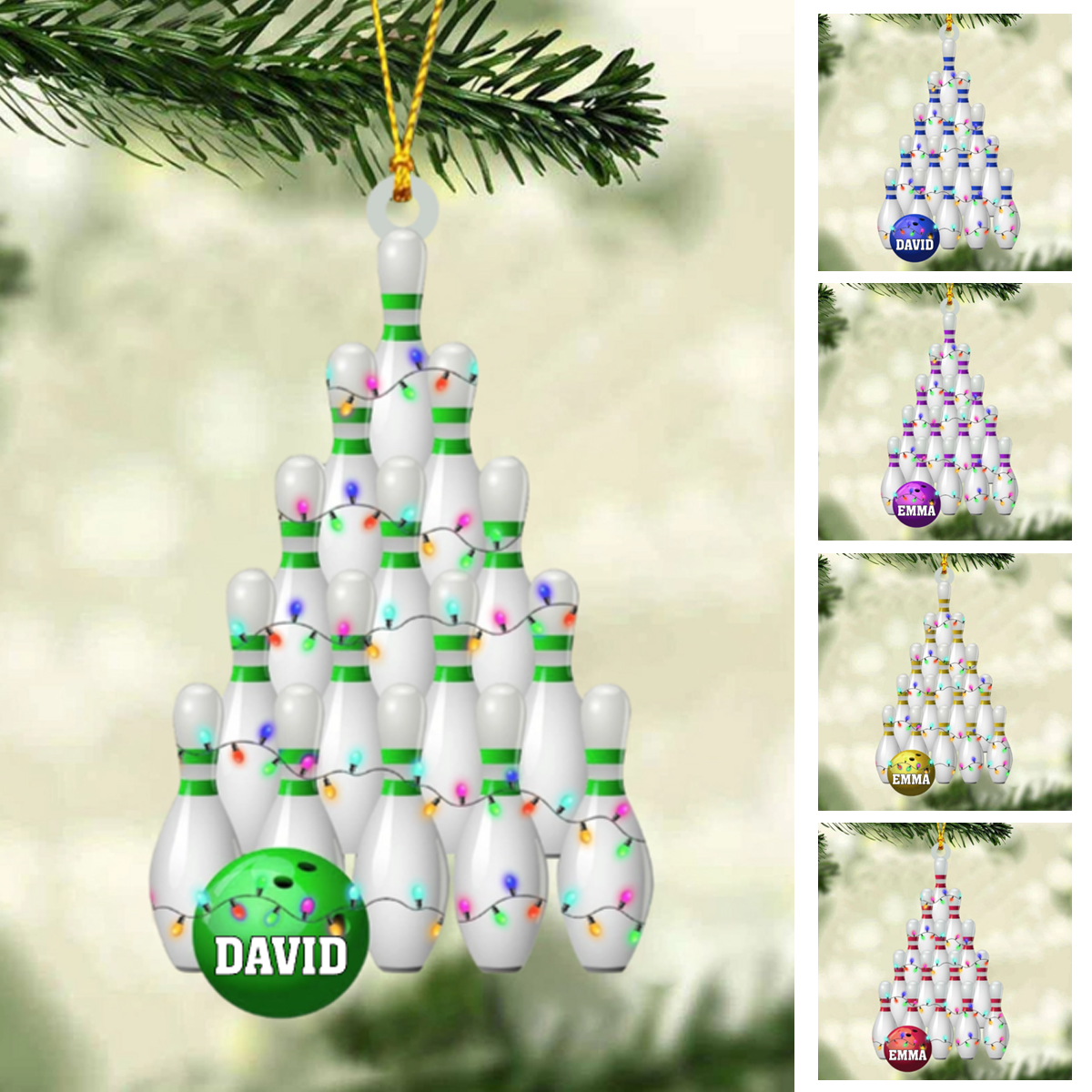 Personalized Bowling Ball And Pins Flat Acrylic Ornament, Meaningful Ornament Gifts For Bowling Lovers, Family, Friends