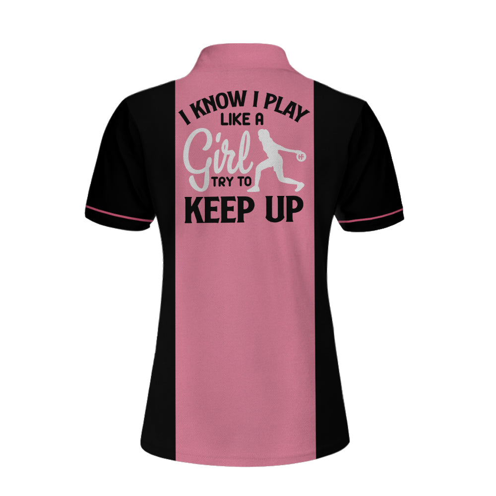 Personalized Bowling Women Polo Shirt, Pink Bowling Shirt For Women, Bowling I Know I Play Like A Girl Custom Short Sleeve Women Polo Shirt