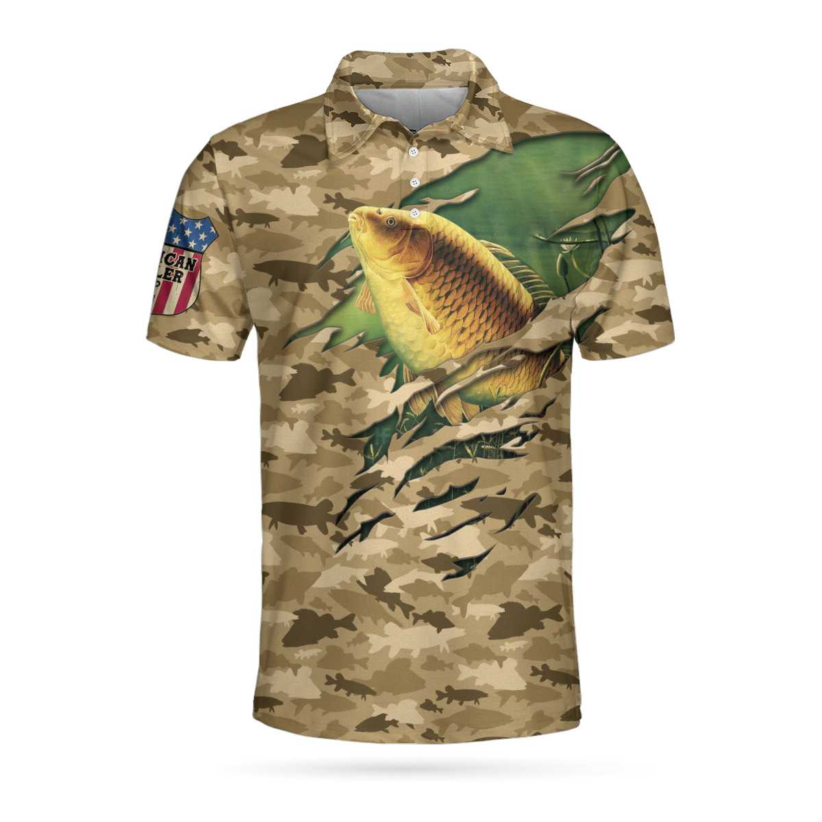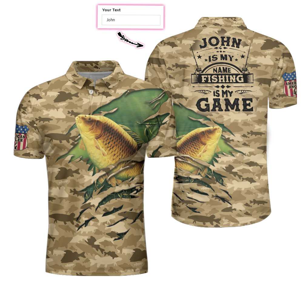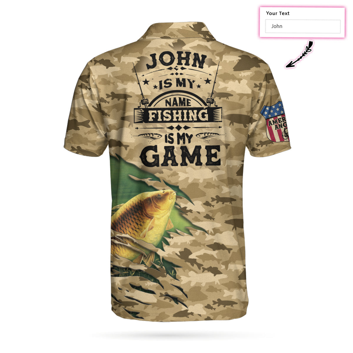 Personalized Camouflage American Flag Men Polo Shirt, Name Fishing Is My Game Custom Polo Shirt, Camo Fishing Shirt For Men