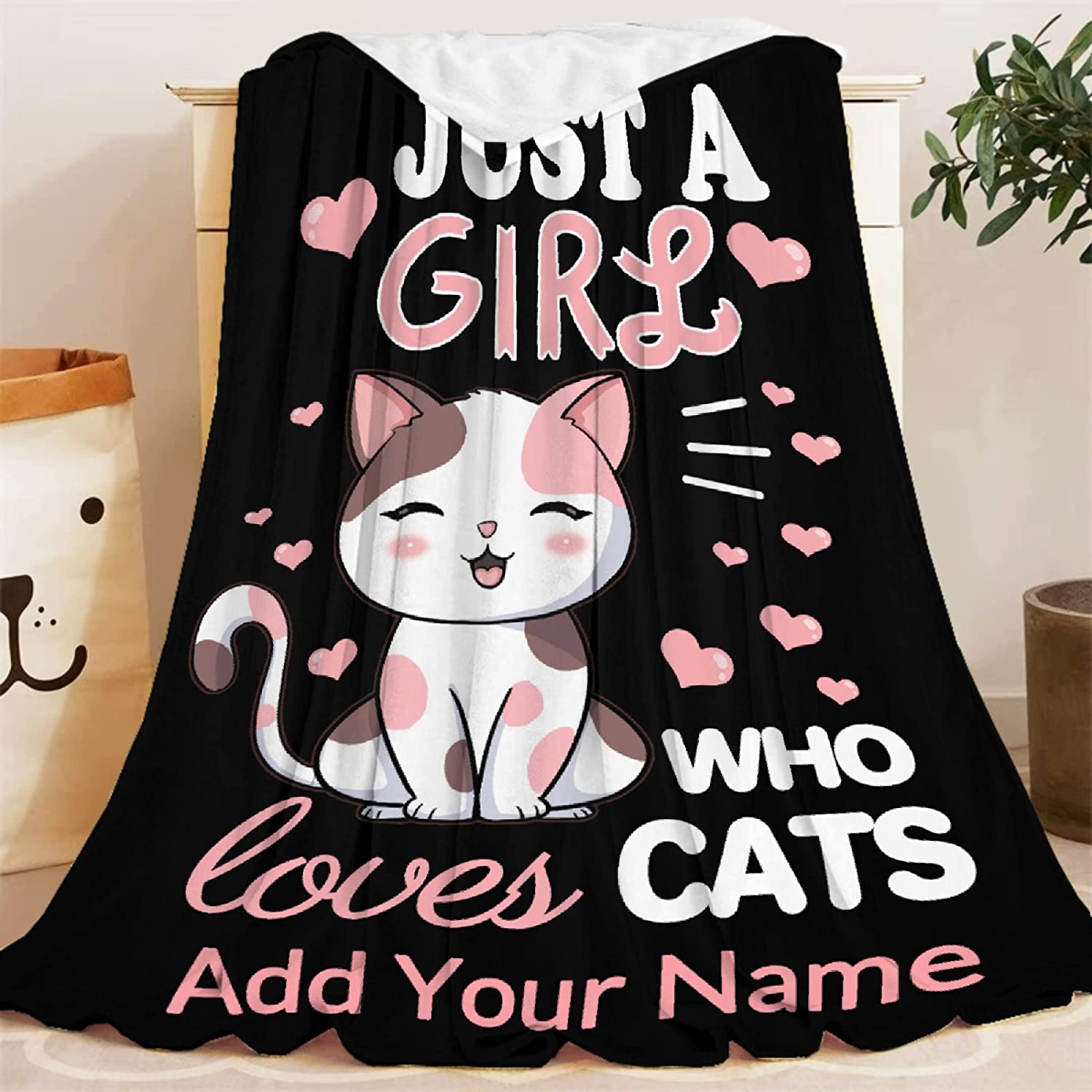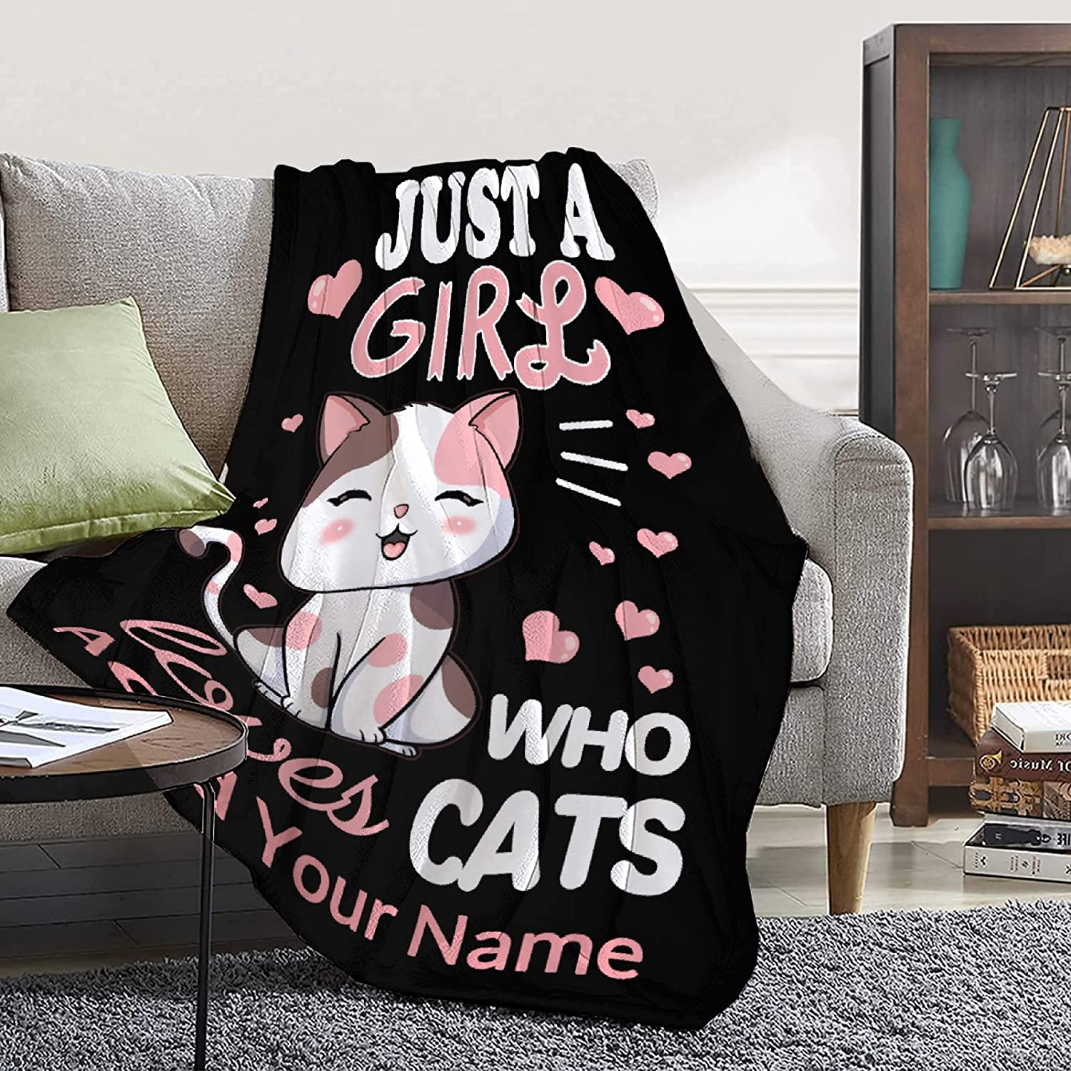 Personalized Cat Blanket - Cute Animals Blankets - Custom Gift For Cat Lovers, Kittens, Daughters, Women, Kids - Just A Girl Who Loves Cats Blankets