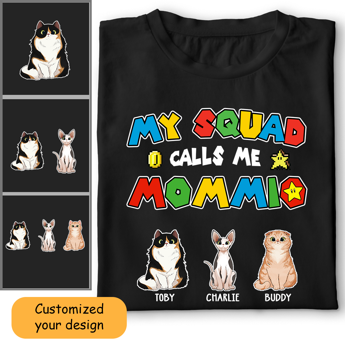 Personalized Cat Mom Shirt My Squad Calls Me Mommio For Cat Mom, Mother, Grandma, Mother's Day Gift - HN23