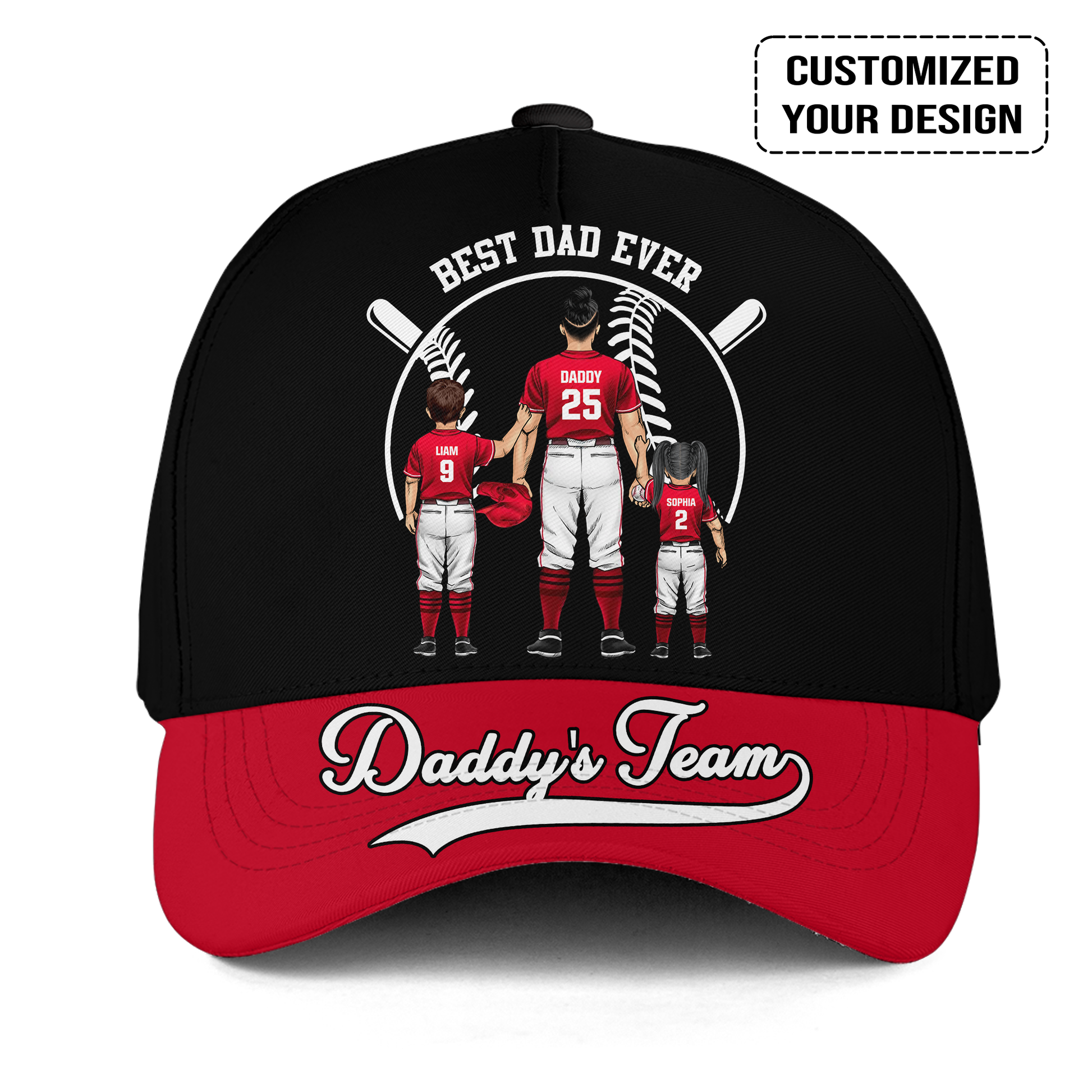Personalized Cincinnati Baseball Theme Family Dad Cap, Best Dad Ever, Daddy's Team Hat For Dad, Father, Grandpa, Family