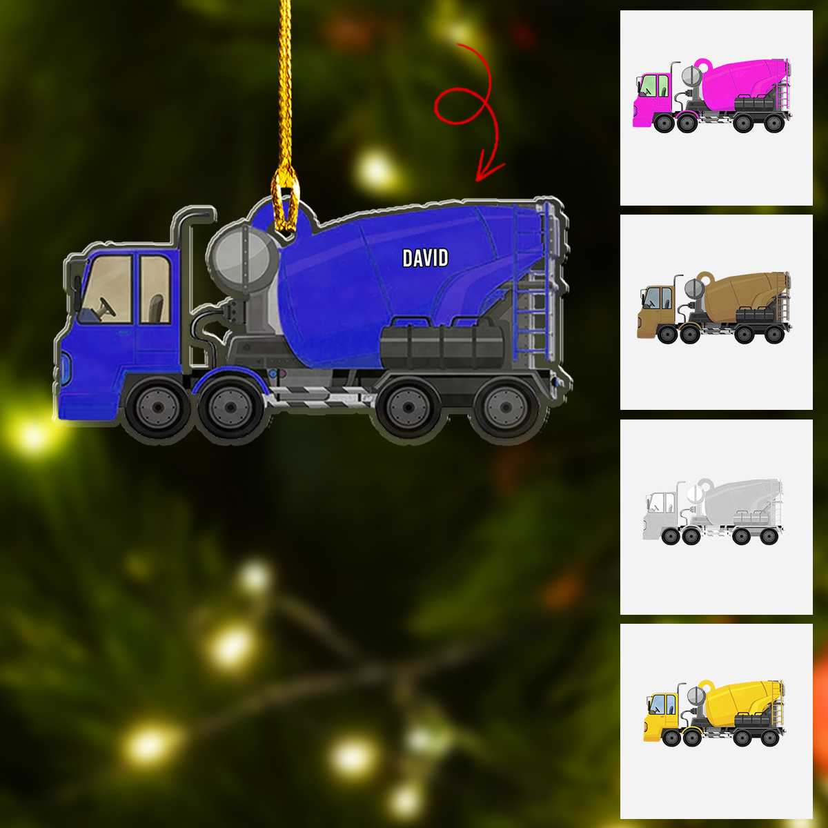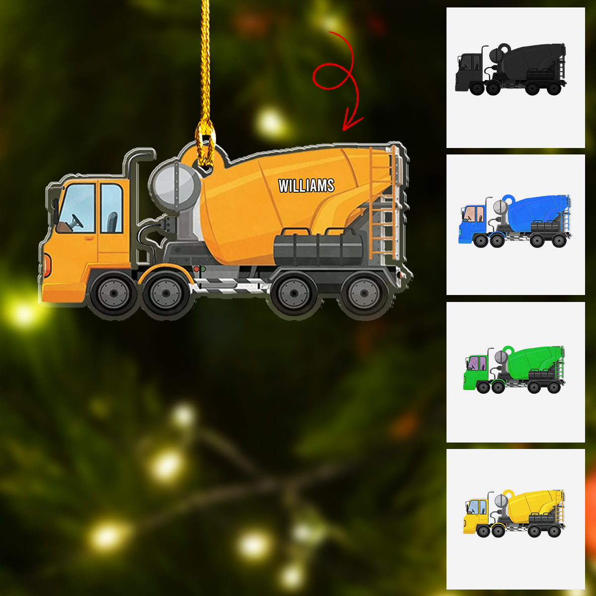 Personalized Concrete Cement Mixer Truck Flat Acrylic Ornament, Christmas Ornament Gift For Grandson, Son, Friends
