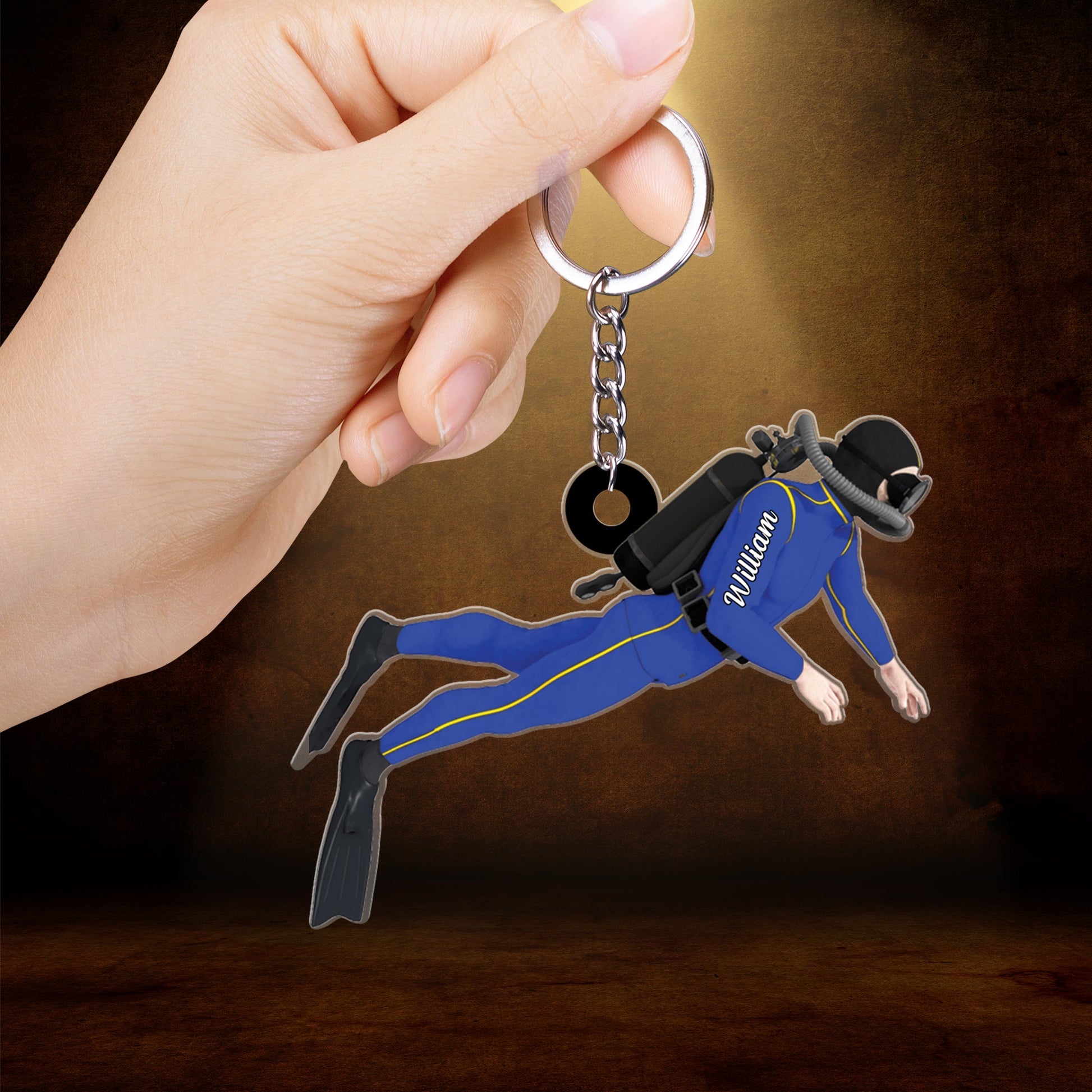 Personalized Diver Acrylic Keychain, Scuba Diving Acrylic Keychain For Diving Lovers, Christmas Gifts