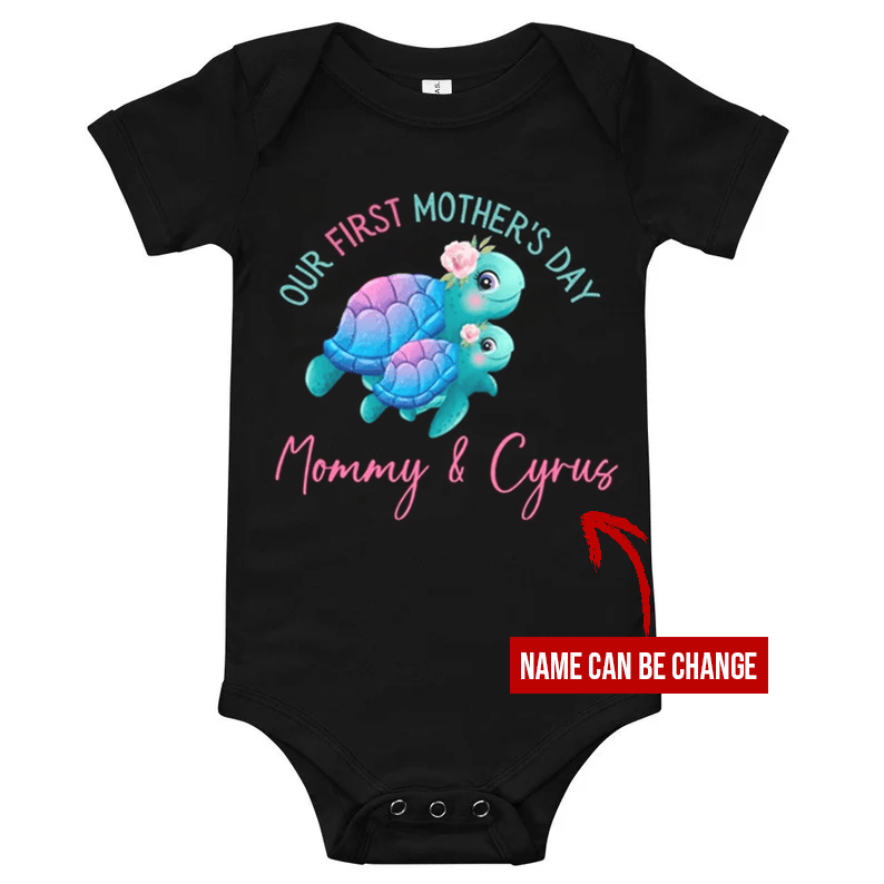 Personalized First Mother's Day Turtle Baby Gift For Mom And Baby Newborn Onesies - HN14