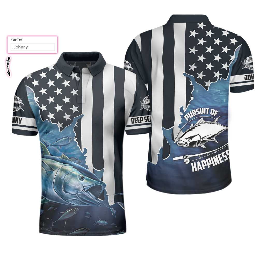 Personalized Fishing Men Polo Shirt, American Flag Tuna Pursuit of Happiness Custom Polo Shirt, Shirt, Best Fishing Custom Shirt For Men