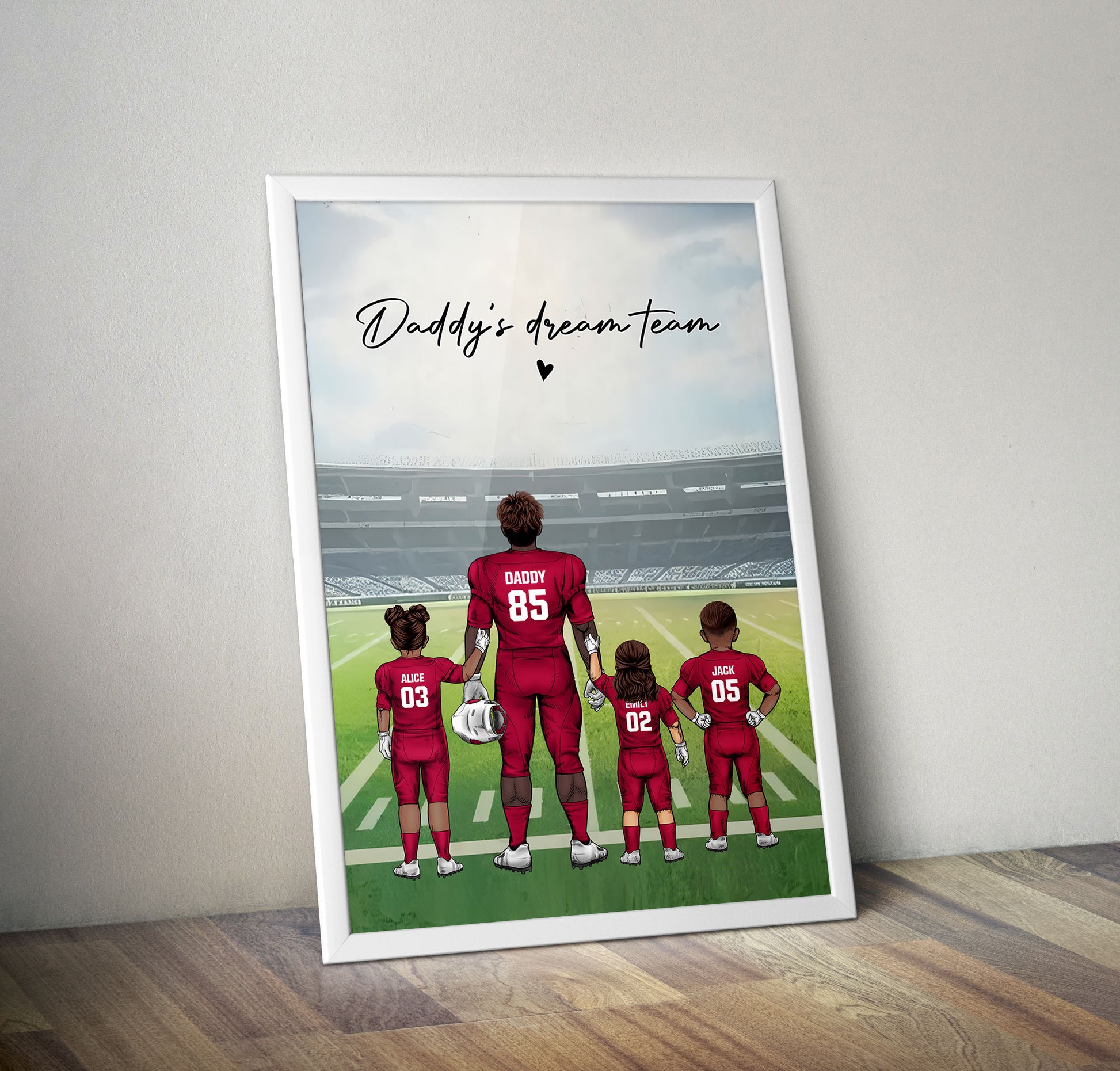 Personalized Football Family Dad Poster Wall Art, Daddy Dream Team Football Poster