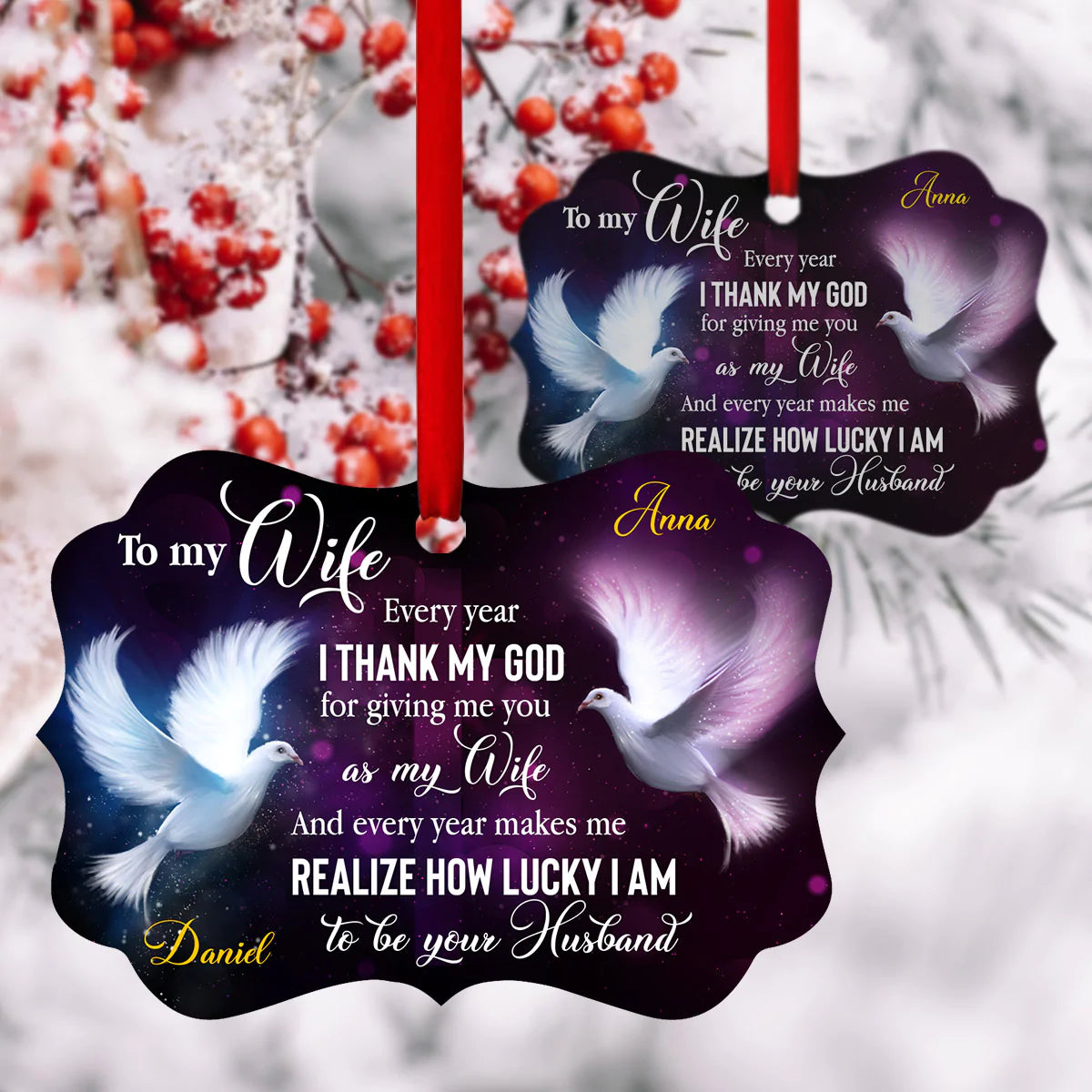 Personalized Gift For Wife Aluminum Ornament - Pigeon Aluminium Ornament - Custom Gift For Wife, Christian Couple, Spouse, Lover - Thank God For Giving Me You