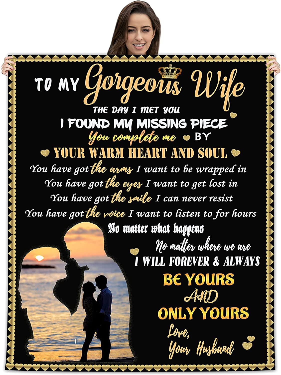 Personalized Gift For Wife Blanket - To My Wife, Pictures Couple Blanket - Custom Romantic Gift For Wife From Husband, Birthday, Anniversary Wedding, Christmas, Valentines Blanket