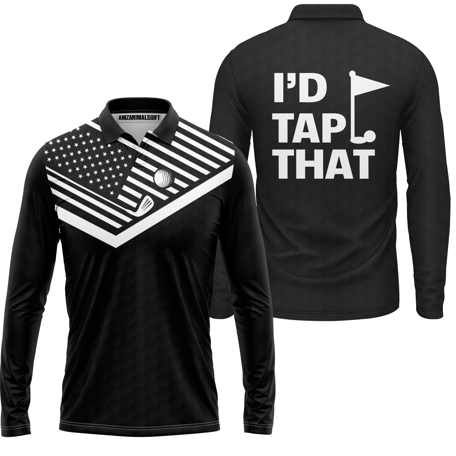 Personalized Golf American Flag Golf Unisex Polo Shirt, I'd Tap That Golf Custom Shirt For Men, Gift Idea For Male Players, Gift For Golfers