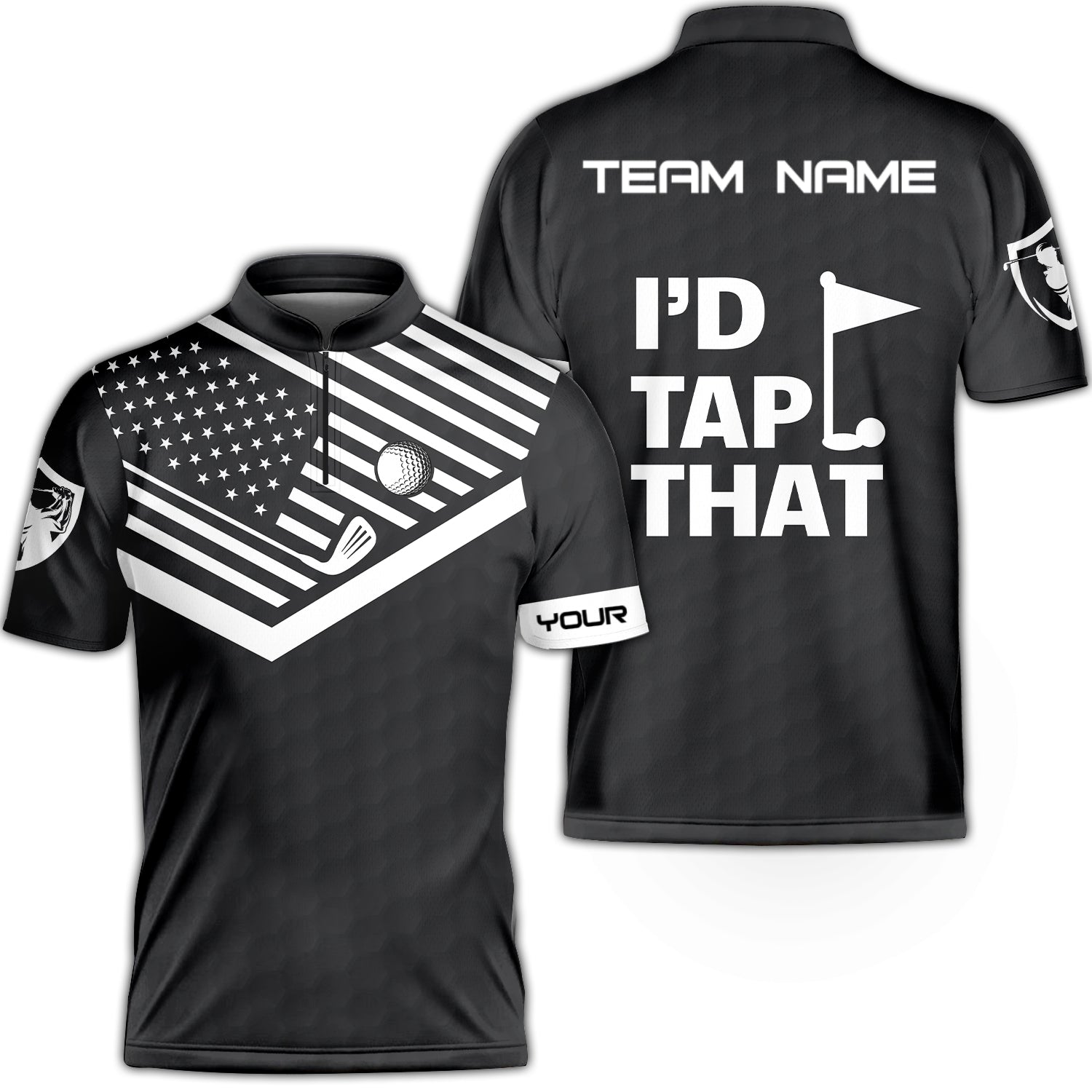 Personalized Golf American Flag Golf Zip Jersey Shirt, I'd Tap That Golf Custom Shirt For Golf Players, Gift For Golfers