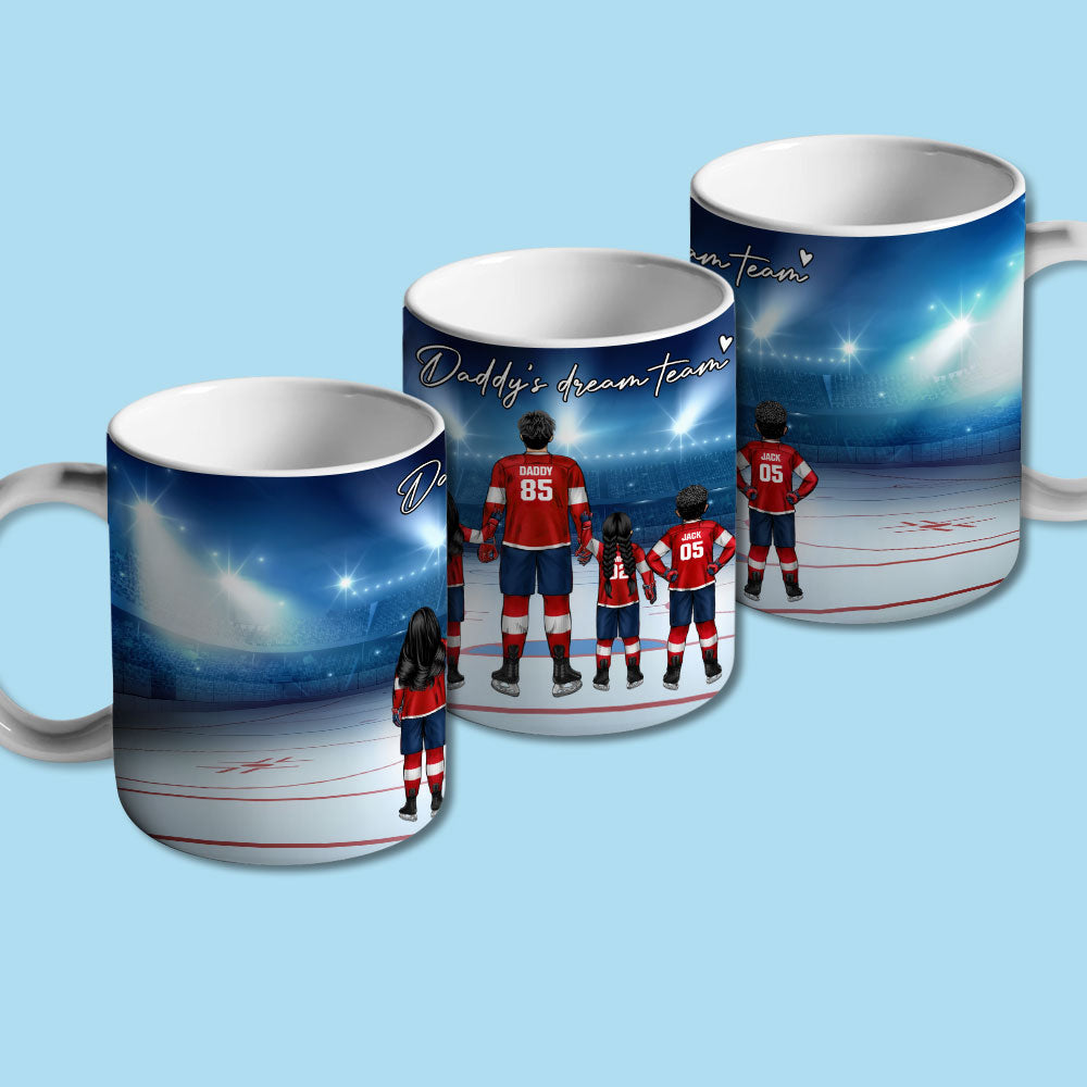 Personalized Hockey Family Dad Mug, Daddy Dream Team Hockey Mug