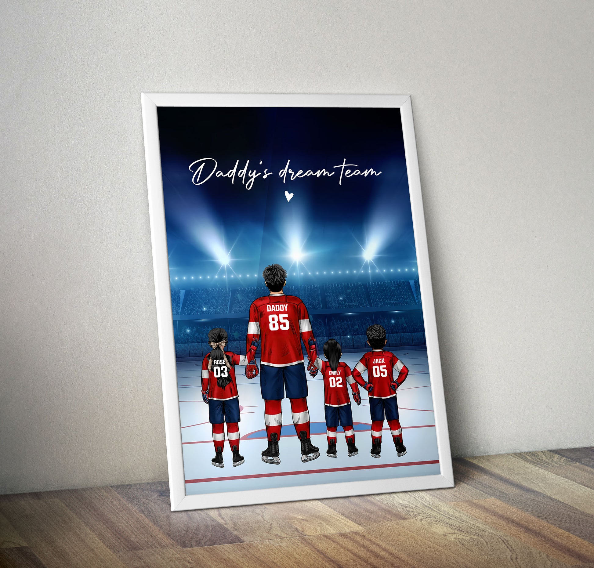 Personalized Hockey Family Dad Poster Wall Art, Daddy Dream Team Hockey Poster